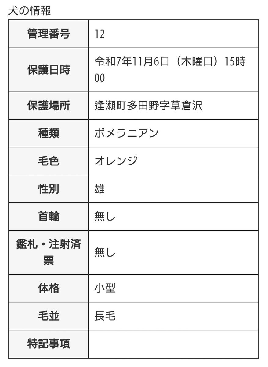 まだお迎えないようです 福島県のみならず他県の方も確認を #迷子犬 #迷い犬 11/6 #福島県 #福島県迷子犬 #郡山市 #郡山市迷子犬 #逢瀬町 #多田野#草倉沢 #ポメラニアン オス オレンジ 小型 📍装着品なし お心当たりある方は保健所まで 郡山市 🔴連絡先🔴 #郡山市保健所 ☎024-924-2157 pic.x.com/OOhgZJ6Ag3 x.com/CLASSICLETSFOL…