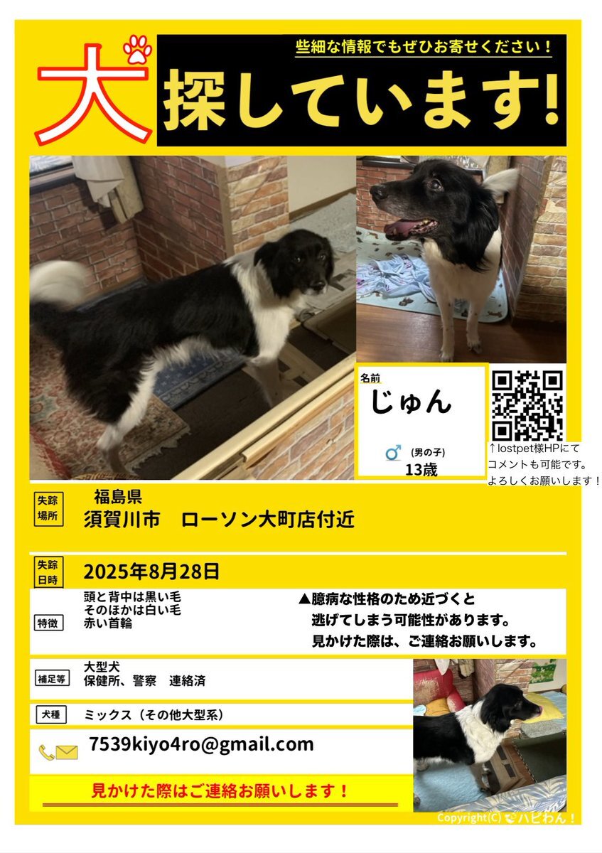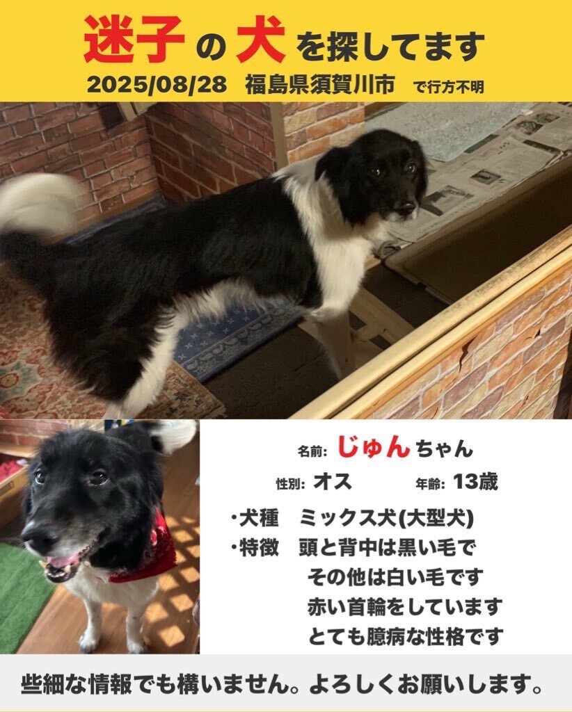 #拡散希望#須賀川市 #郡山市 で似たコの目撃有‼️ 【#福島県迷子犬#ミックス犬 🐶じゅん君🐶 #迷子犬 #保護犬 🟡2025/08/28午前7時頃迷子‼️ #福島県 #須賀川市(引用元様の祖母宅より) 📢#目撃 #保護 等や些細な事でもあれば引用元様迄ご連絡を🙏🙇 pic.x.com/NKRsQYS1zG x.com/MHuAoMKRpZ7358…