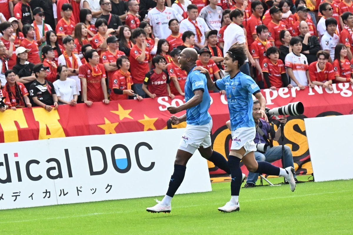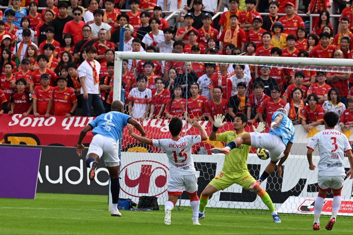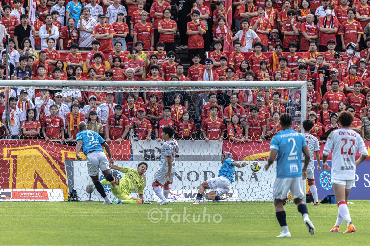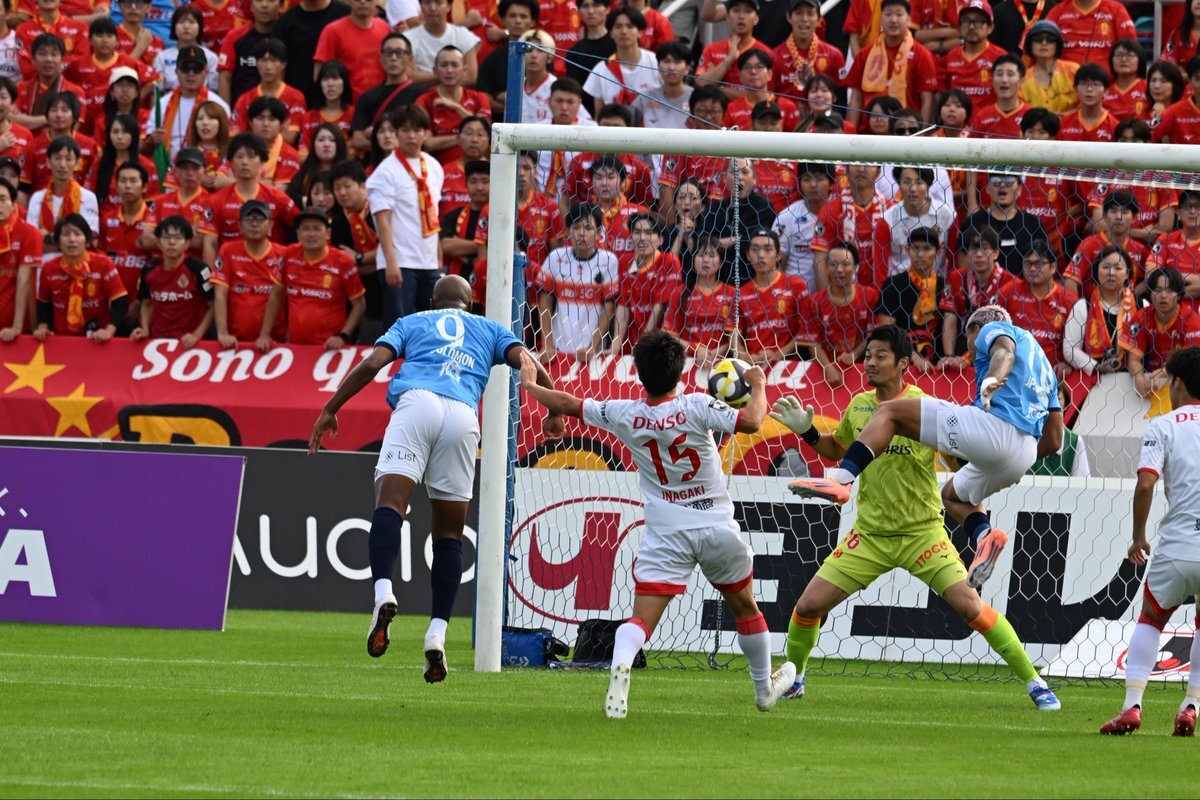 1点目のソロのゴール、悪魔の左足から放たれたクロスにドンピシャ!でしたねえ! #横浜FC #yokohamafc #名古屋グランパス戦 #櫻川ソロモン #福森晃斗 pic.x.com/an8yOog7YU