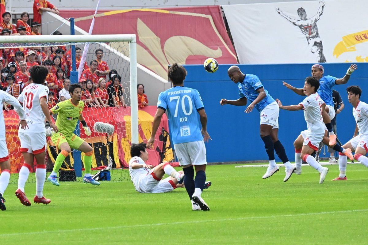 完璧なクロスボールからのドンピシャヘッド! 福森晃斗のクロスボールに反応した #櫻川ソロモン がヘディングでゴールを決め 横浜FCが前半で先制点を獲得! 🏆明治安田J1第34節  🆚横浜FC×名古屋 📺#DAZN ライブ配信中 #Jみようぜ #Jリーグ #だったらDAZN