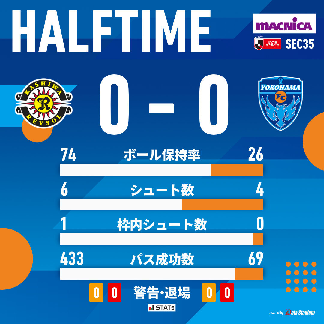 前半終了 明治安田J1リーグ 第35節 #柏レイソル 0-0 #横浜FC 🎦Jリーグ観るなら #DAZN prf.hn/click/camref:1… #yokohamafc #柏横浜FC