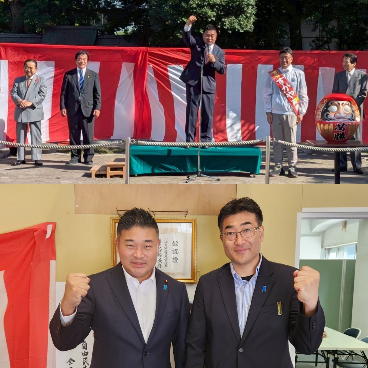 【川崎区】川崎市議会議員補欠選挙 #すがや英彦 候補出陣式。田中和徳代議士の秘書を14年間務めた尊敬するすがやさんが出馬しました!川崎区の皆さん、市長選は #福田紀彦 、市議補選は #すがや英彦 をよろしくお願いいたします! #川崎区 #中央大学レッド pic.x.com/Shaik2qxsL