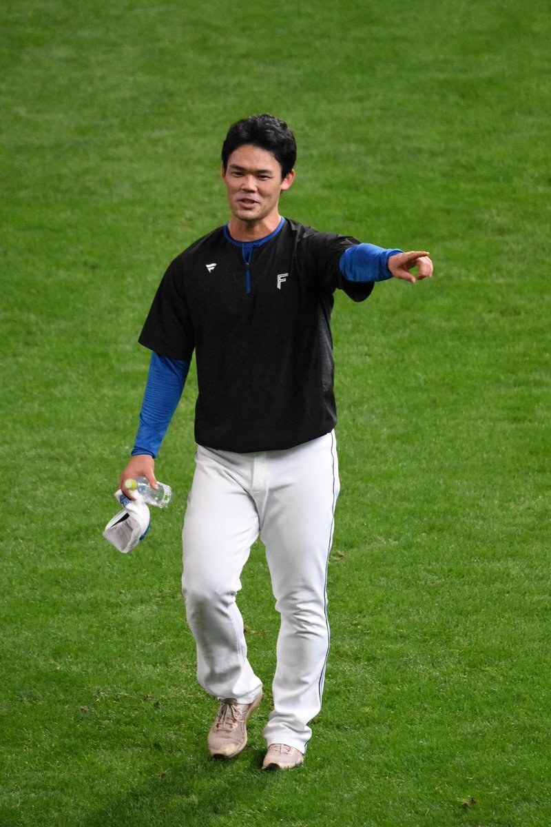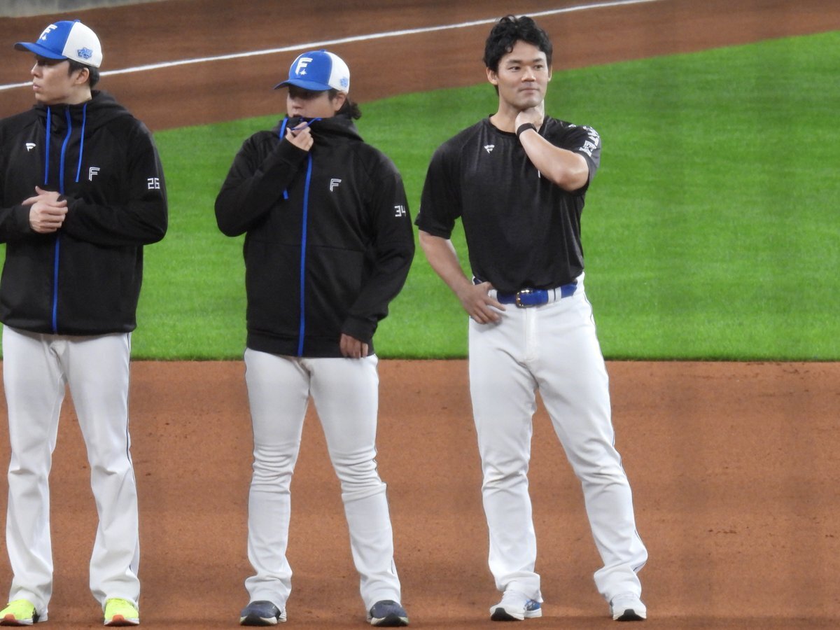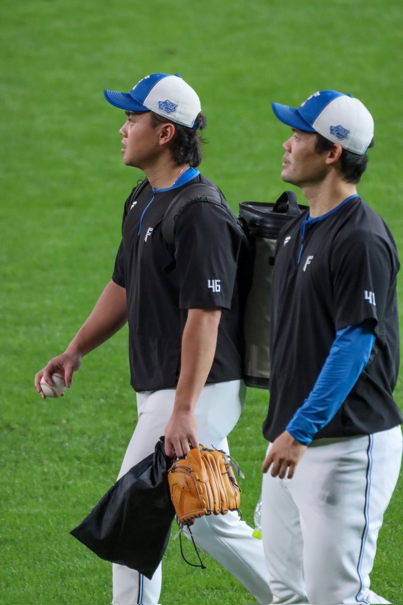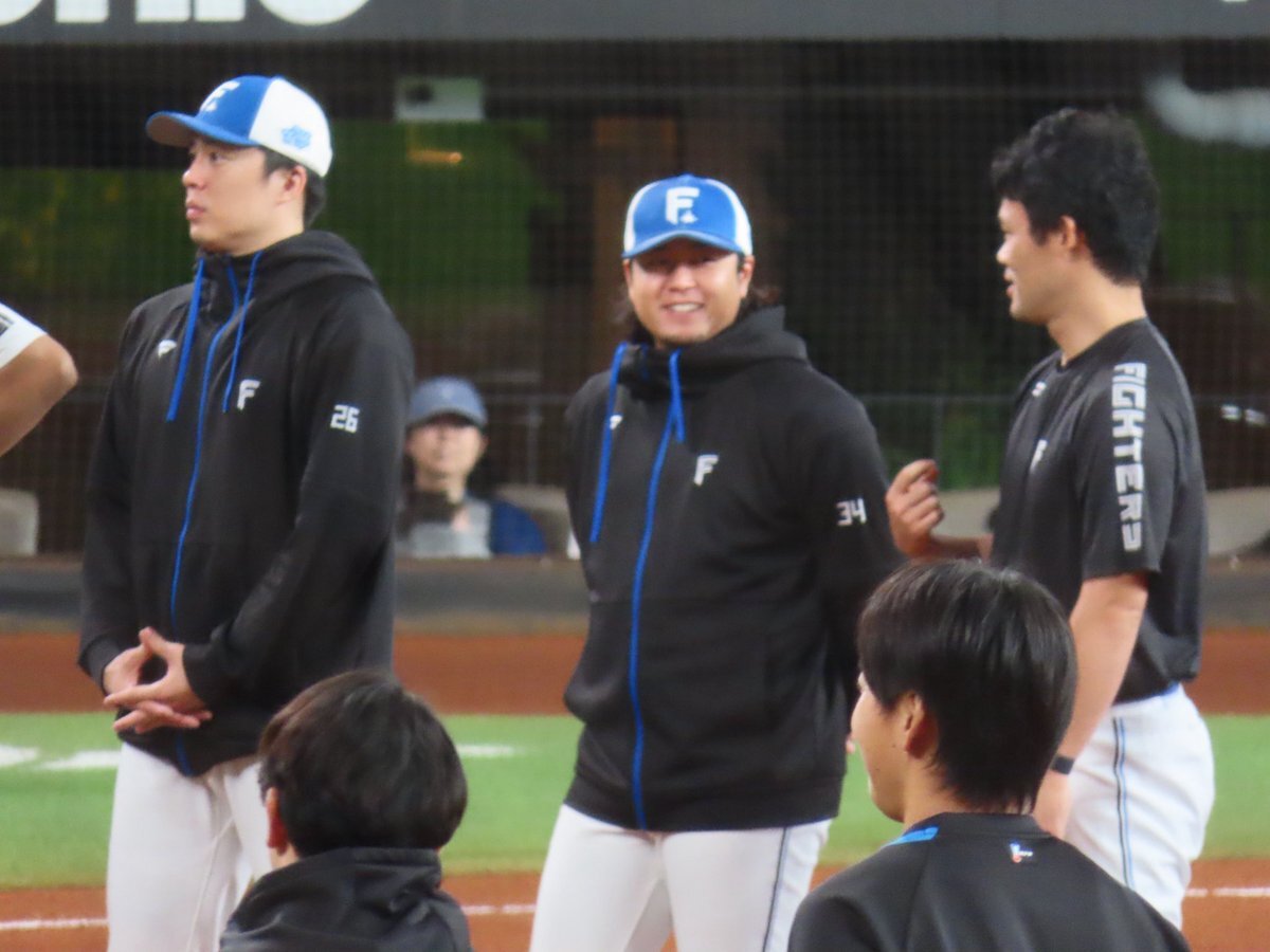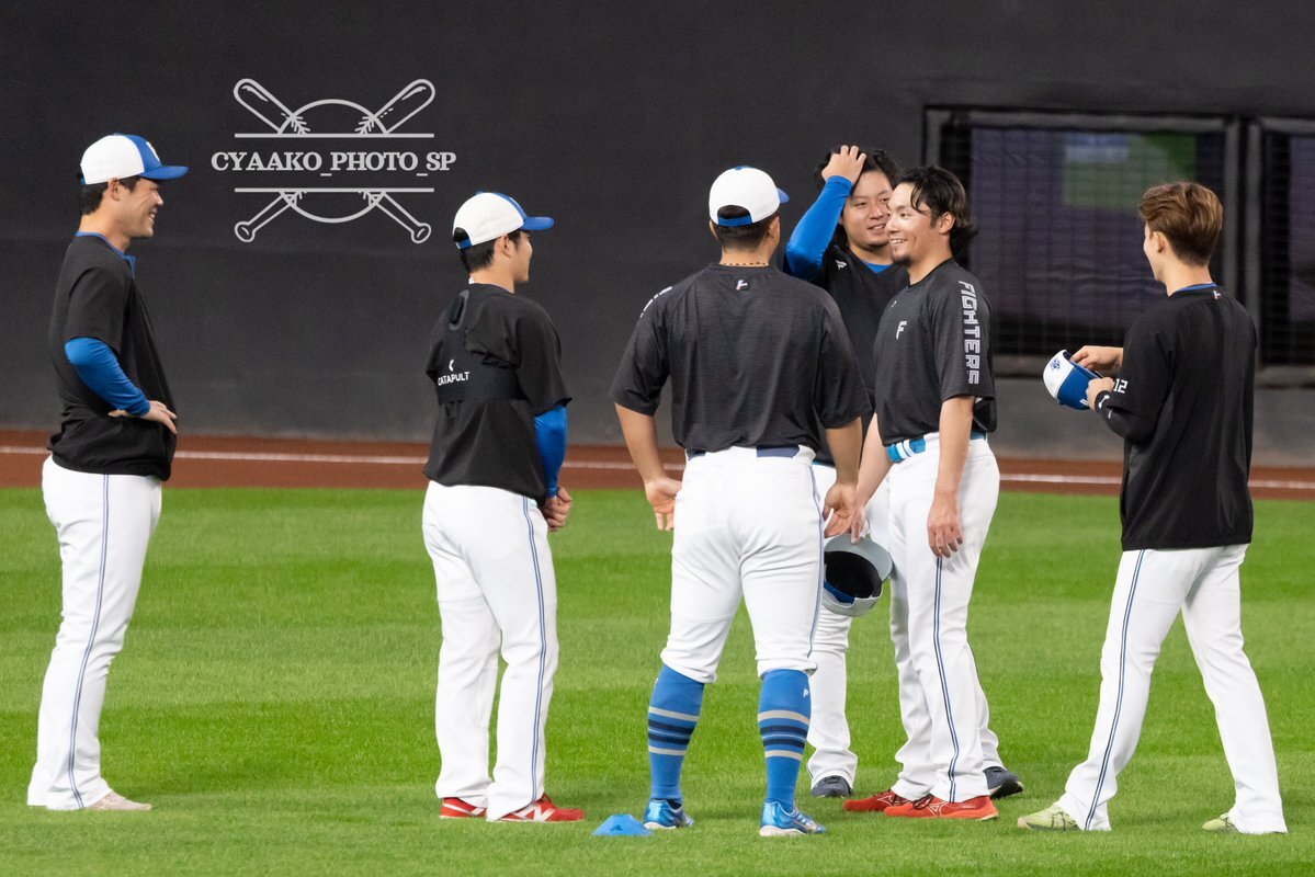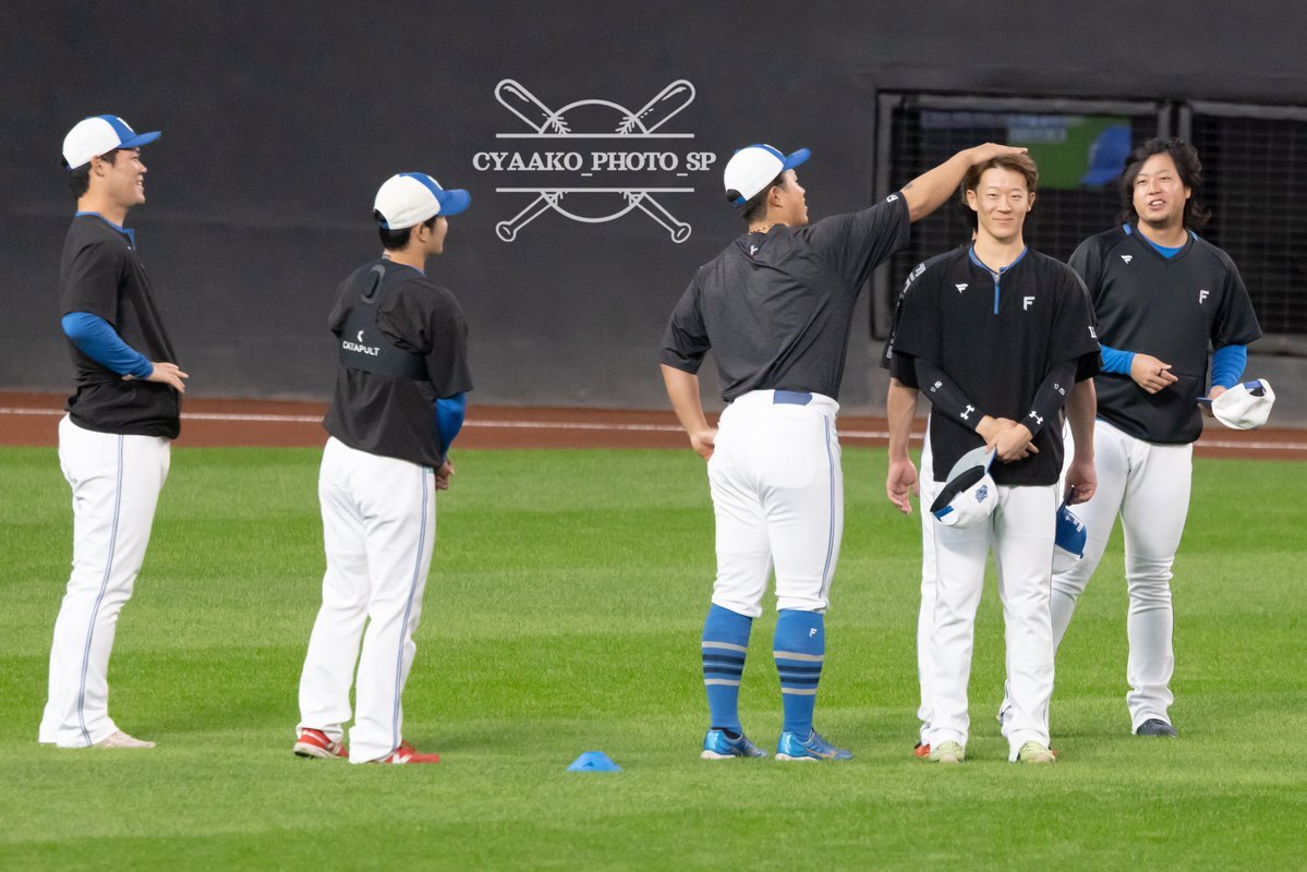 その前に、YAZAWAとぴろみが帽子交換しててYAZAWAの帽子が入らないぴろみ……というくだりがあった😂😂😂 2025.11.2エスコン #lovefighters #今川優馬 #堀瑞輝 #奈良間大己 #福谷浩司 #矢澤宏太 #伊藤大海︀ #伊藤大海 pic.x.com/AoYzv2Pnnv x.com/cyaako_photo_s…