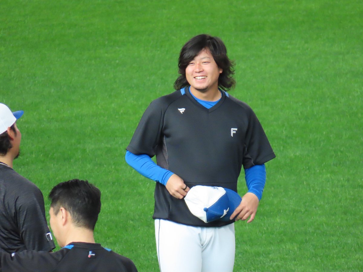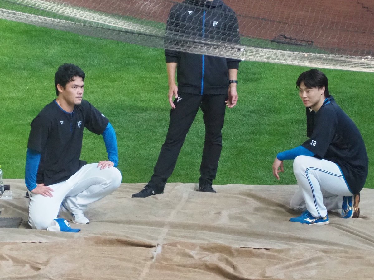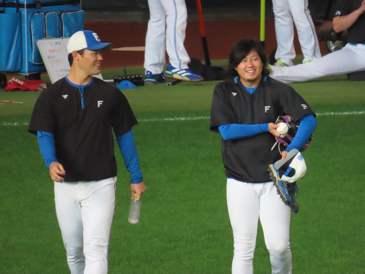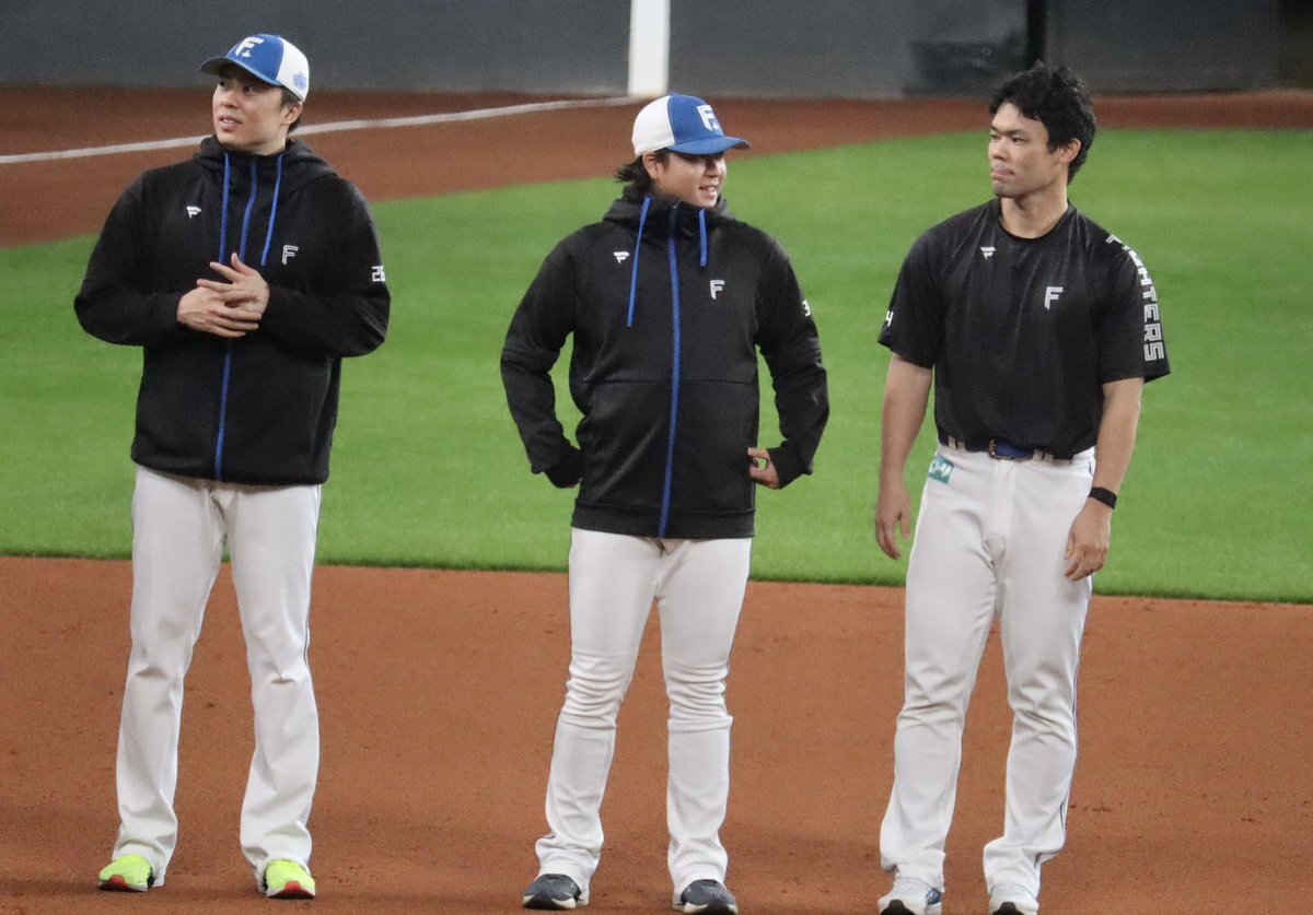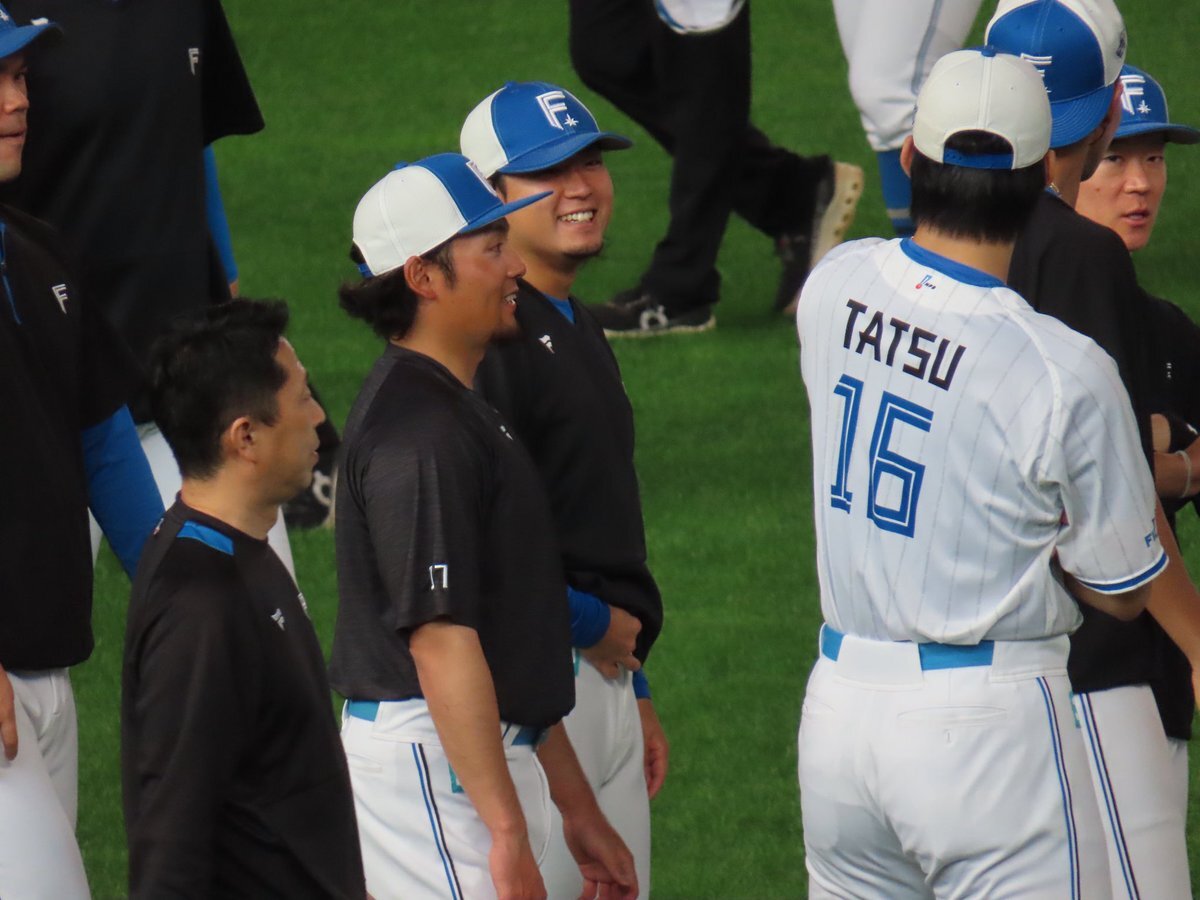 その前に、YAZAWAとぴろみが帽子交換しててYAZAWAの帽子が入らないぴろみ……というくだりがあった😂😂😂 2025.11.2エスコン #lovefighters #今川優馬 #堀瑞輝 #奈良間大己 #福谷浩司 #矢澤宏太 #伊藤大海︀ #伊藤大海 pic.x.com/AoYzv2Pnnv x.com/cyaako_photo_s…