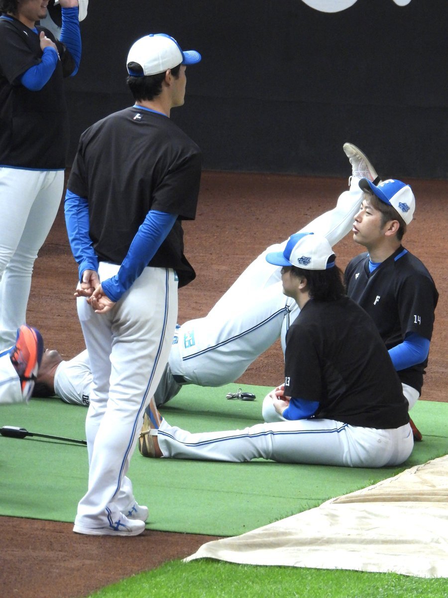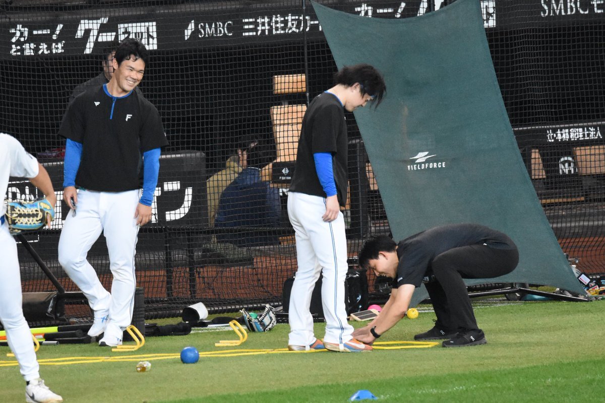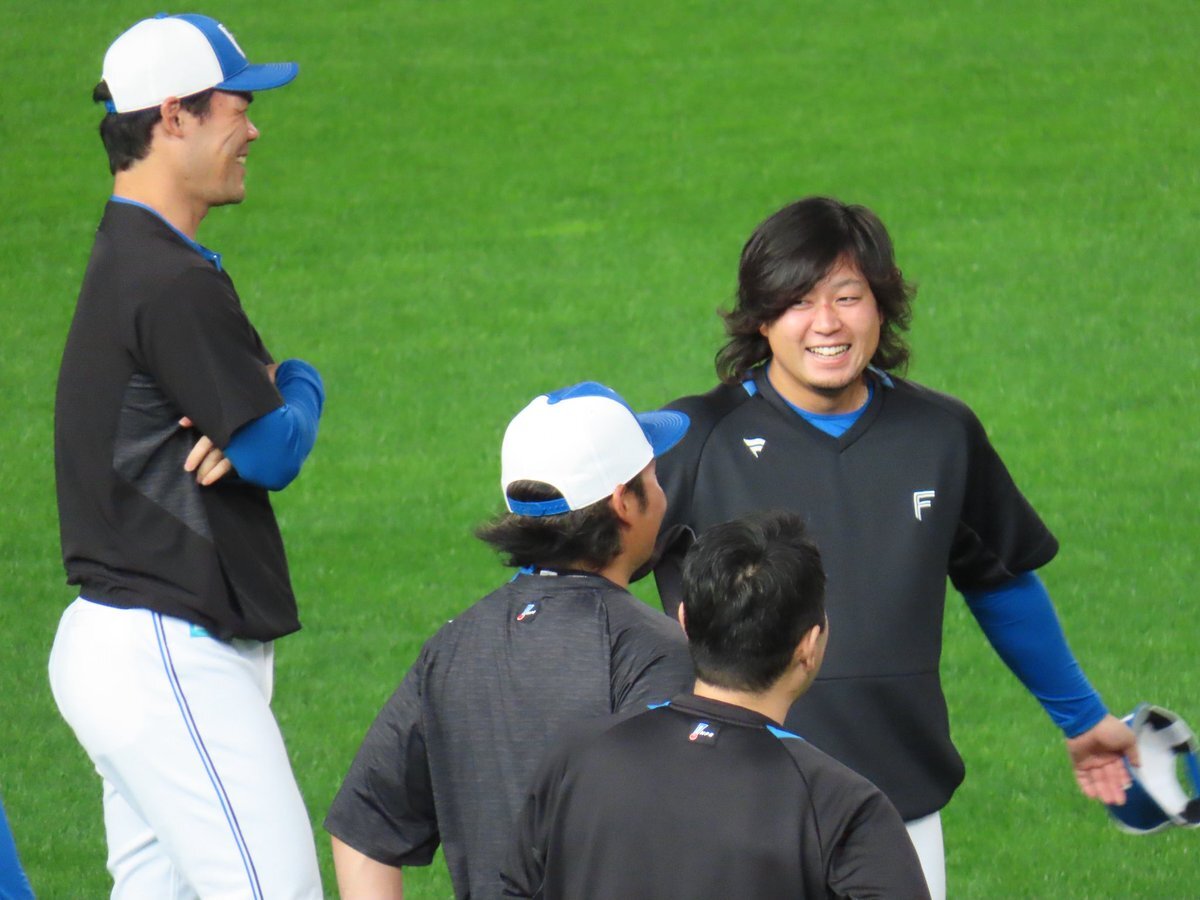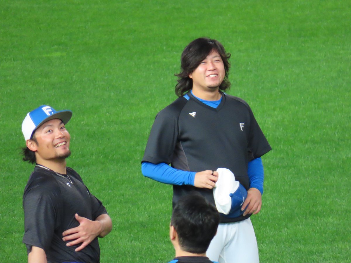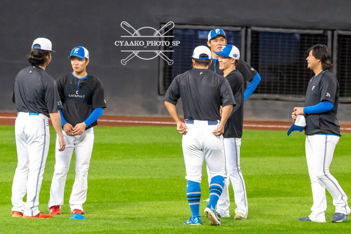 その前に、YAZAWAとぴろみが帽子交換しててYAZAWAの帽子が入らないぴろみ……というくだりがあった😂😂😂 2025.11.2エスコン #lovefighters #今川優馬 #堀瑞輝 #奈良間大己 #福谷浩司 #矢澤宏太 #伊藤大海︀ #伊藤大海 pic.x.com/AoYzv2Pnnv x.com/cyaako_photo_s…