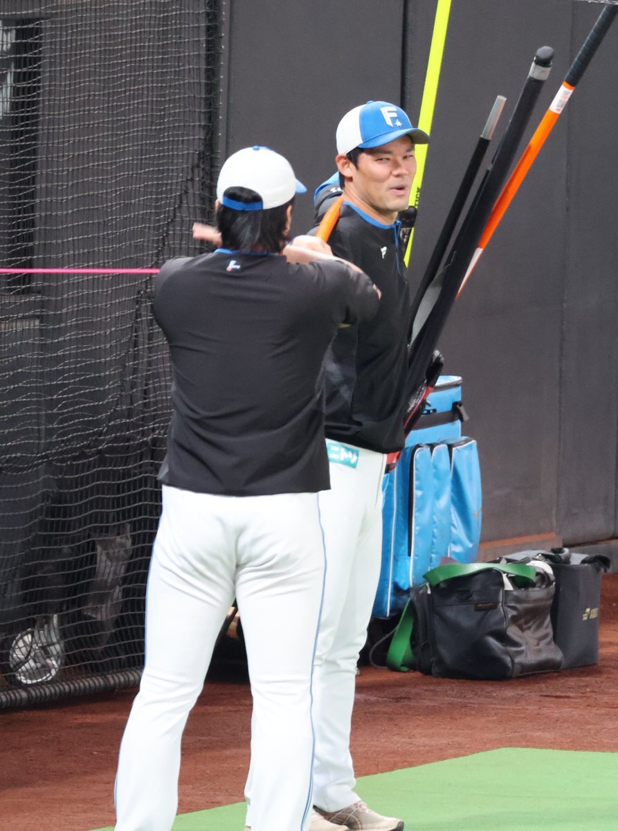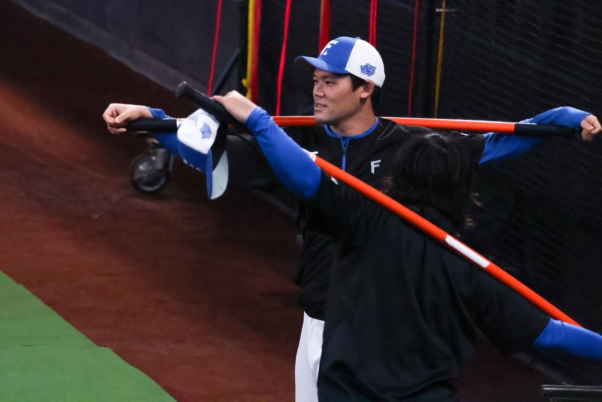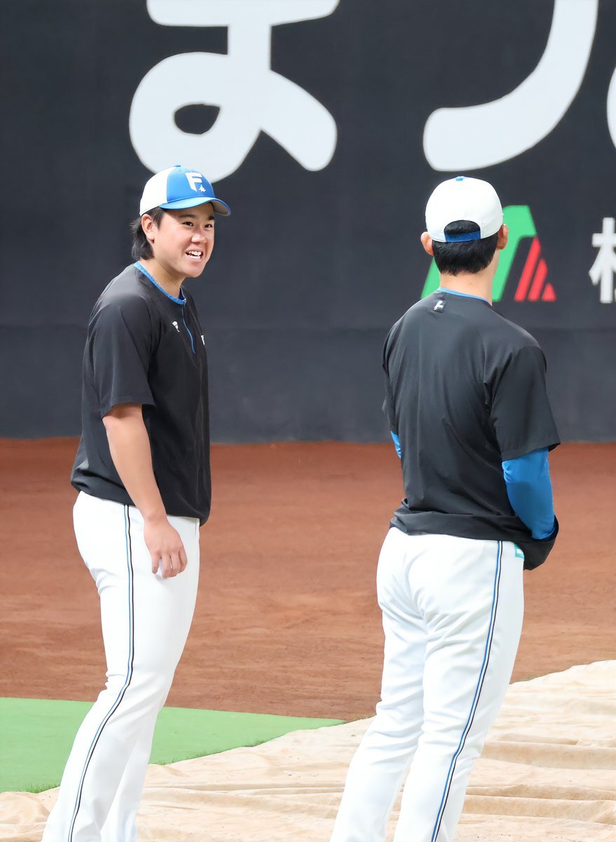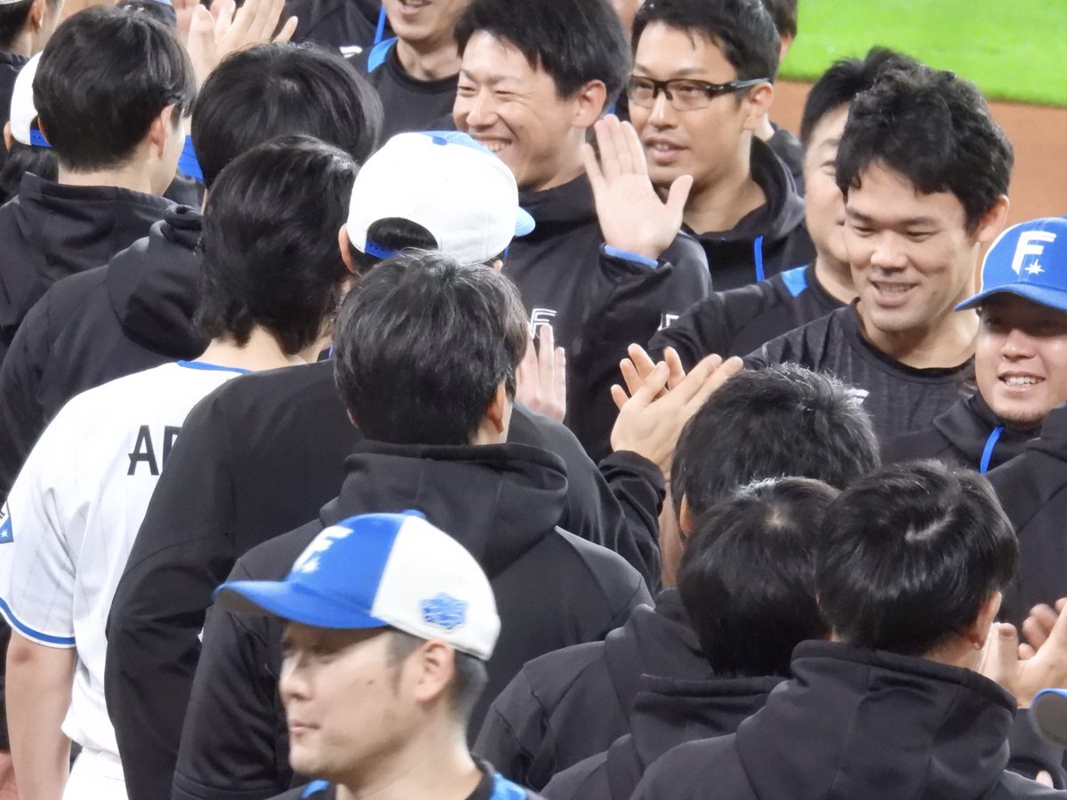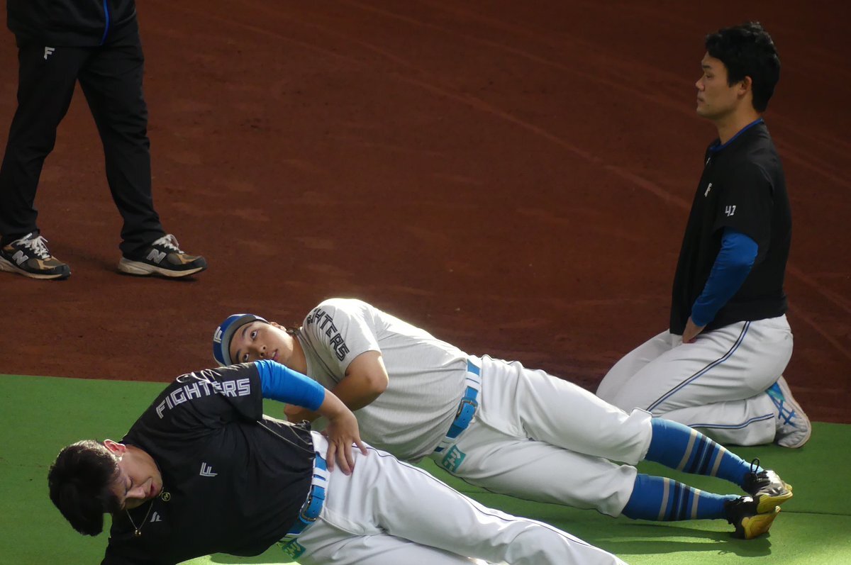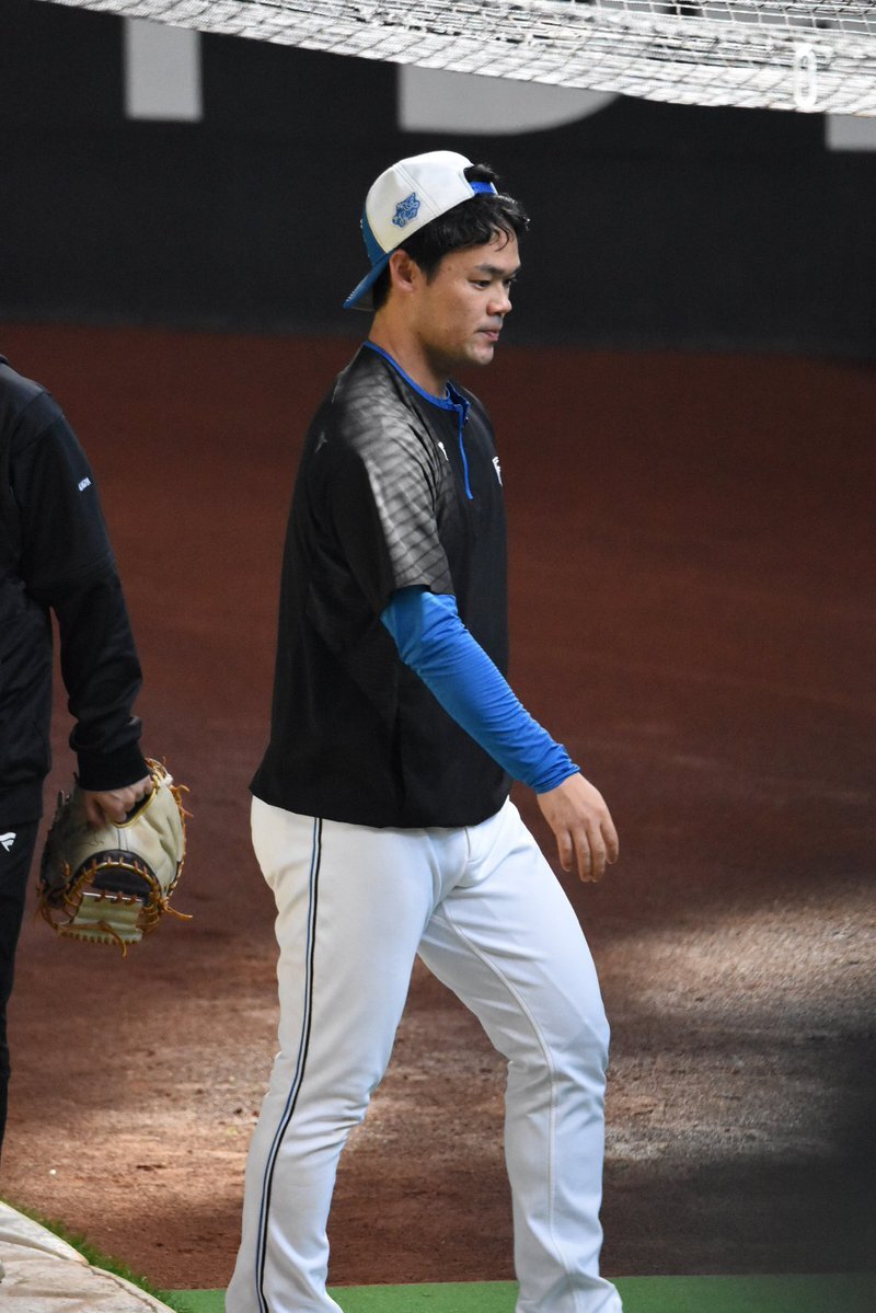 その前に、YAZAWAとぴろみが帽子交換しててYAZAWAの帽子が入らないぴろみ……というくだりがあった😂😂😂 2025.11.2エスコン #lovefighters #今川優馬 #堀瑞輝 #奈良間大己 #福谷浩司 #矢澤宏太 #伊藤大海︀ #伊藤大海 pic.x.com/AoYzv2Pnnv x.com/cyaako_photo_s…