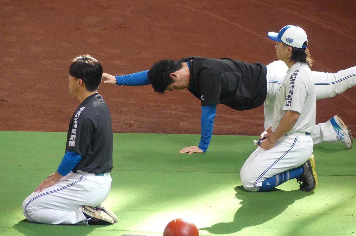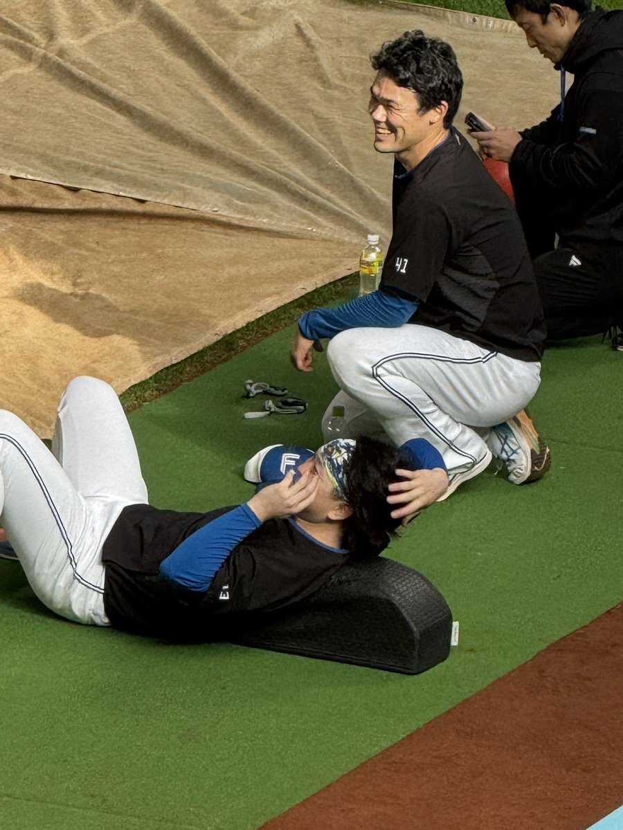 その前に、YAZAWAとぴろみが帽子交換しててYAZAWAの帽子が入らないぴろみ……というくだりがあった😂😂😂 2025.11.2エスコン #lovefighters #今川優馬 #堀瑞輝 #奈良間大己 #福谷浩司 #矢澤宏太 #伊藤大海︀ #伊藤大海 x.com/cyaako_photo_s…