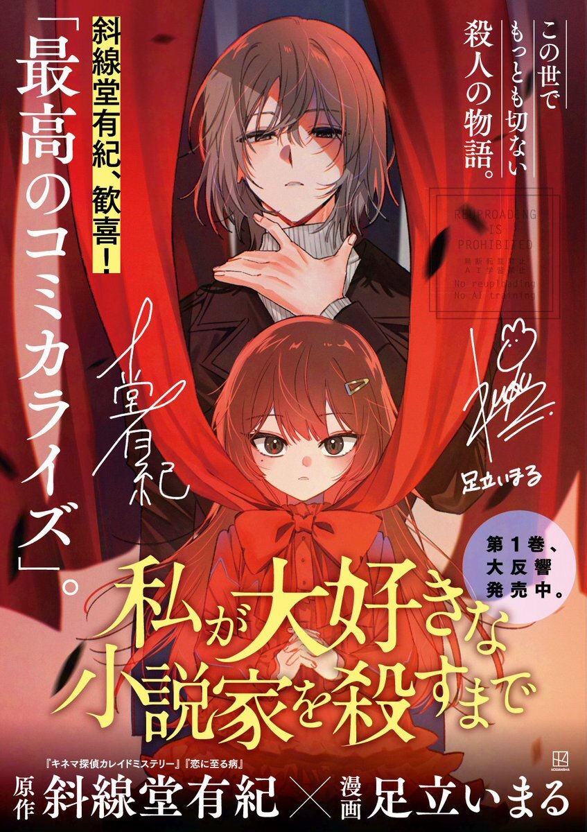 おはようございます #私が大好きな小説家を殺すまで #斜線堂有紀 コミカライズ版 購入 漫画:足立いまる先生 小説は再読するほど好きな作品で、 コミカライズ版が発売されたので購入しました pic.x.com/MHsxirF8Me