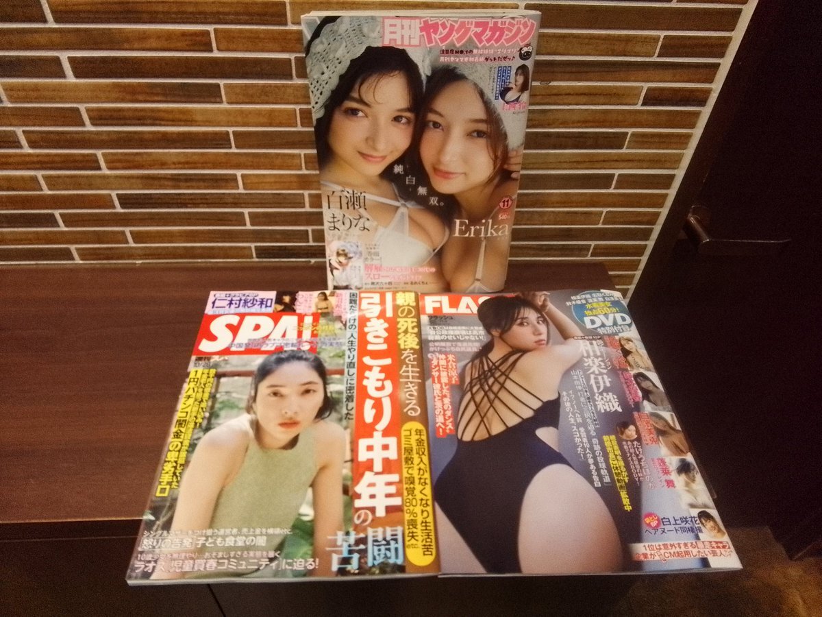 新刊入荷いたしました! #月刊ヤングマガジン 11月号 #SPA 10/28号 #FLASH 11/4号 #爆弾 1巻 #私が大好きな小説家を殺すまで 1巻 #ねずみロワイヤル 3巻 #戦国怪獣記ライゴラ 3巻 #半グレ 13巻 #OUT 28巻 ご来店お待ちしております。 pic.x.com/wm8s2oOLCq