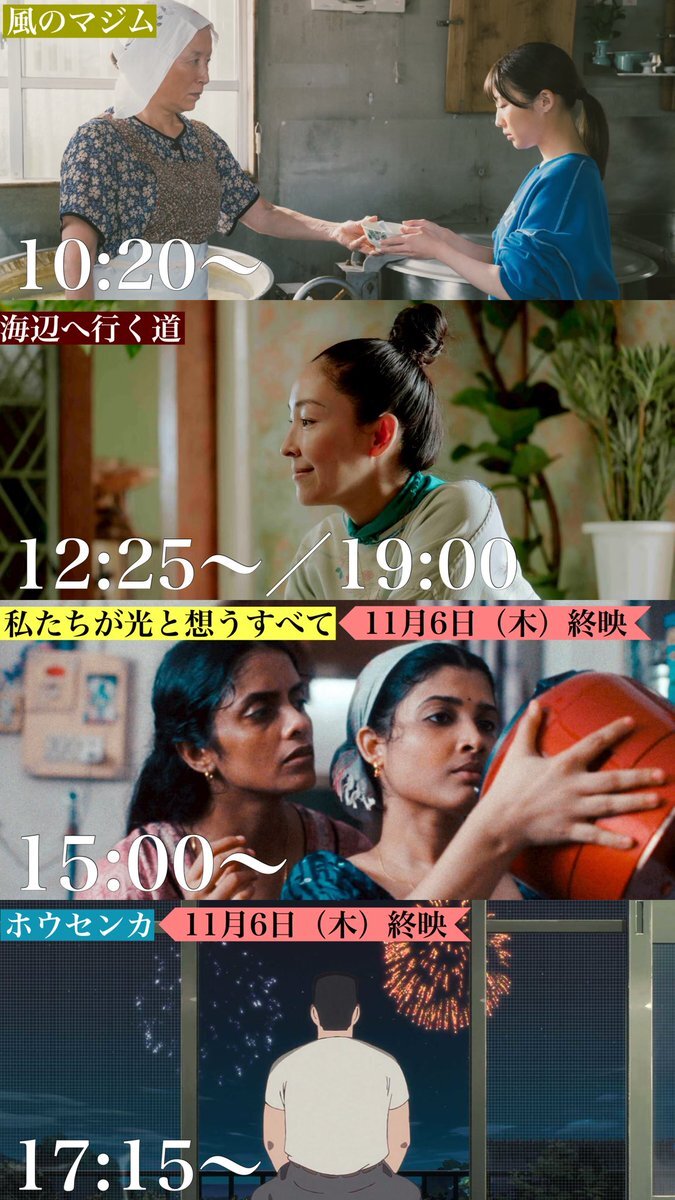 11/6終映2作品のご案内🗯️ 好評につき延長上映決定👏 #ホウセンカ ⏰17:15〜(〜10/30) ▶️9:30〜(10/31〜11/6) 東京国際映画祭アニメーション部門正式出品✨ #私たちが光と想うすべて ⏰15:00〜(〜10/30) ▶️17:40〜(10/31〜11/6) インド映画史上初の快挙‼️ カンヌ国際映画祭グランプリ受賞作✨ pic.x.com/S0rOCfzaV2