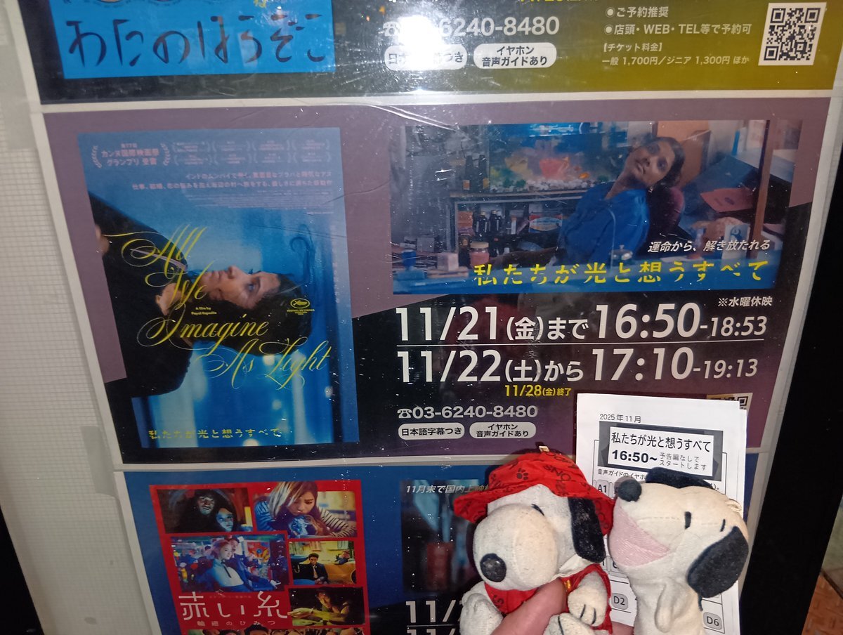 本日(11/5)は水曜サービスデー🩵 下記2作品は11/6(木)終映! 『#海辺へ行く道』⏳15:05〜 『#私たちが光と想うすべて』⏳17:40〜 お見逃しなく💨 ぜひご活用ください🤝🏻 pic.x.com/we5BGib6pS