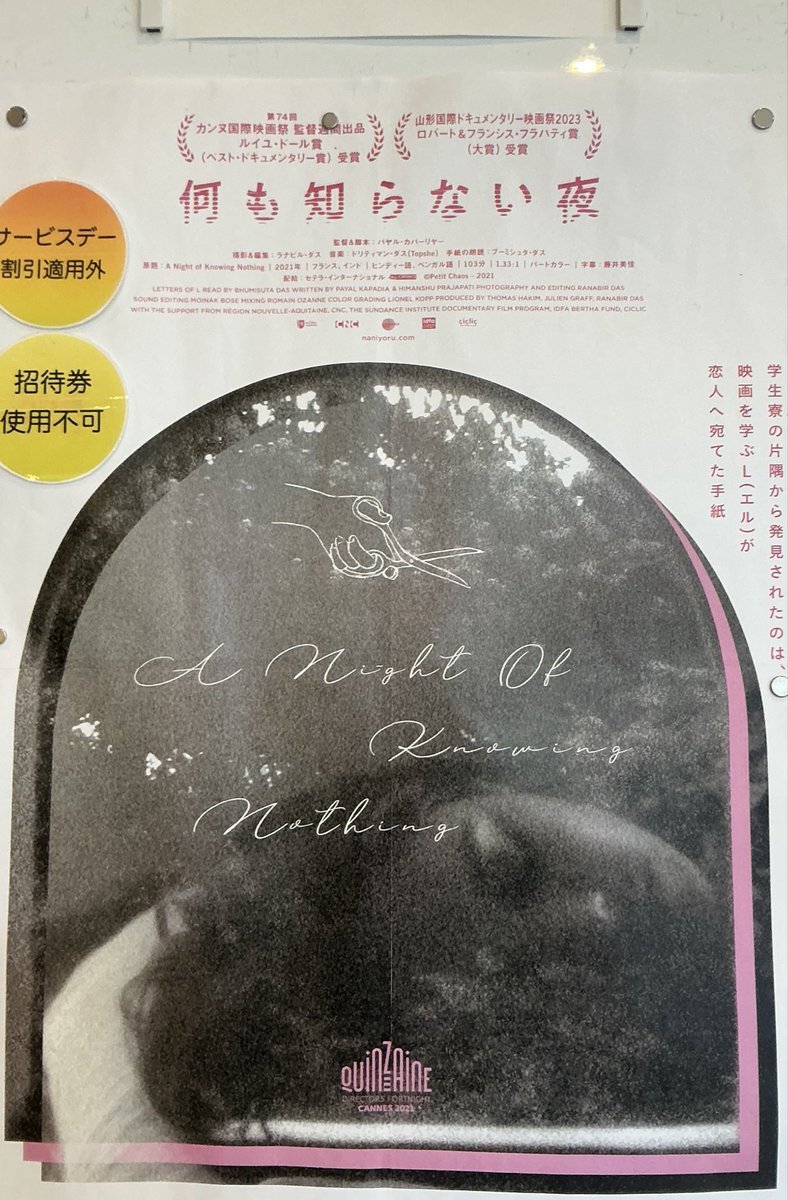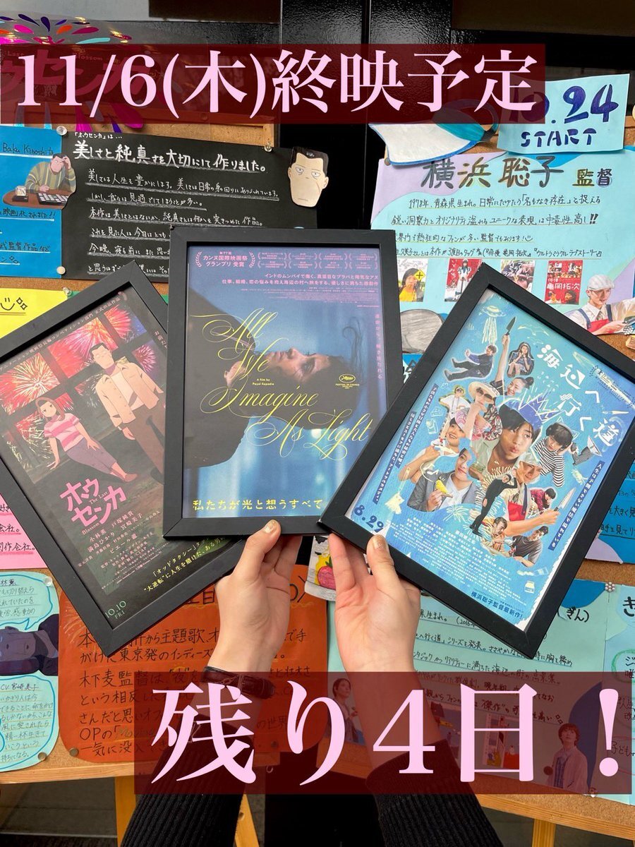 明日は水曜サービスデー❤️🔥 11月6日(木)終映予定🍿 #私たちが光と想うすべて #ホウセンカ (好評につき延長上映) 11月7日(金)以降の上映有無未定🎬 #風のマジム #海辺へ行く道 10/31(金)上映開始😎 #ブラックバッグ 皆様のお越しをお待ちしております☺️ pic.x.com/Tuadxc6UCf
