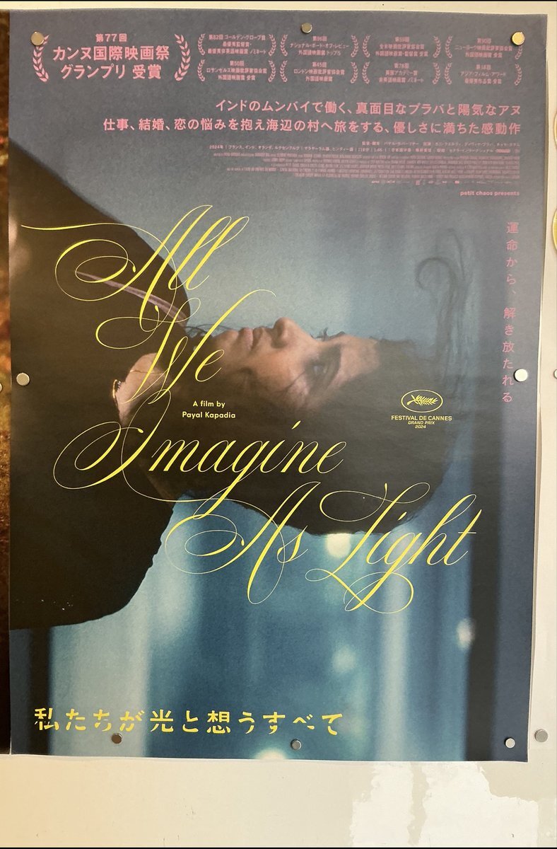 「#私たちが光と想うすべて」を観てきた。フランスやオランダとの合作だからかなかなかシリアスなインド映画だった。カンヌでグランプリを獲得したこの作品は流されるまま日常を過ごしていたインドの女性たちが自らの意思で生きていこうと決意してゆく物語。その勇気を応援したくなる。 #シネヌーヴォ pic.x.com/3HS3Hd0RU6