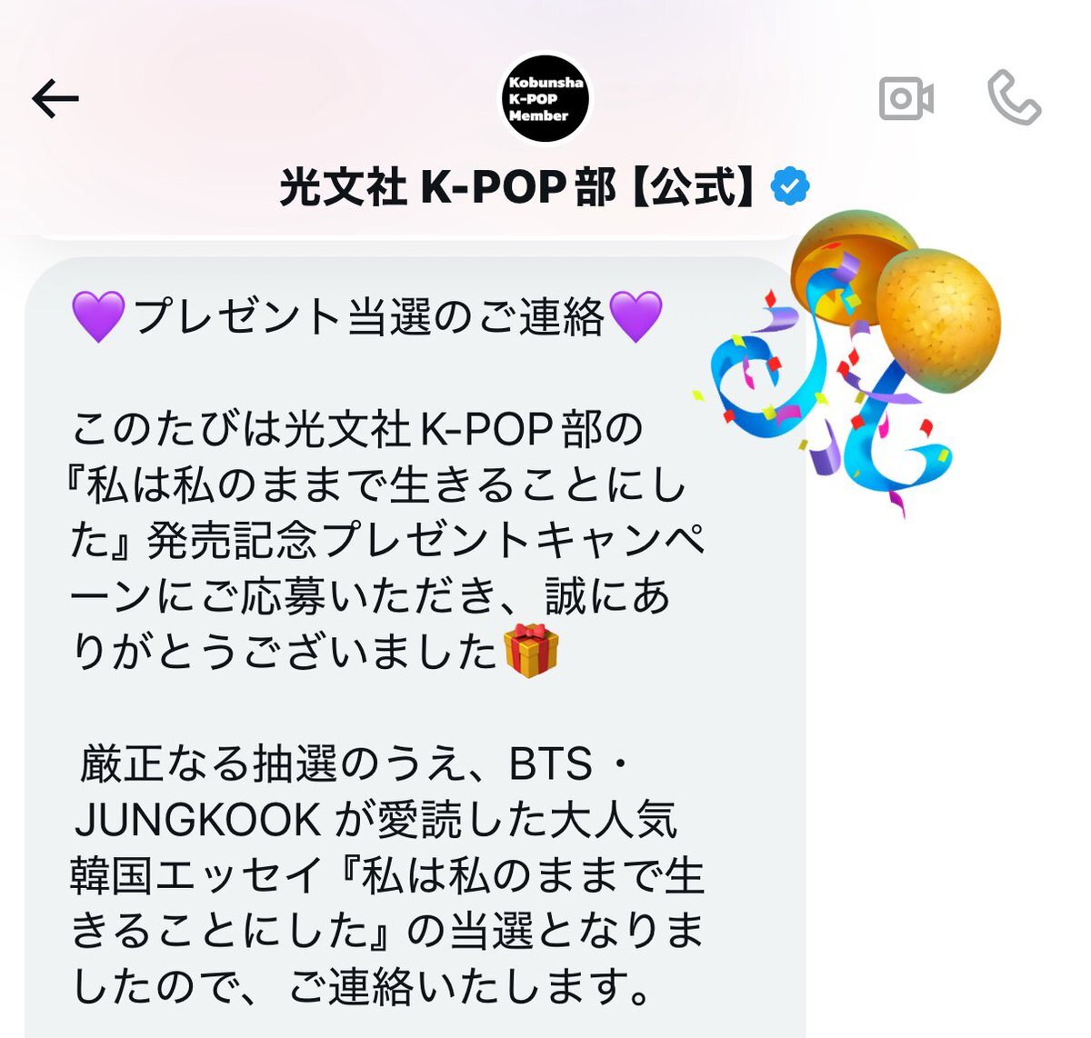 やったぁ🙌当選しました🎯✨ 前から読みたかった本📘 と〜っても嬉しいです ·͜·ꕤ ありがとうございます😊💜 #私は私のままで生きることにした #kokodeブックス #BTS #JUNGKOOK #ジョングク #정국 #ARMY pic.x.com/ymhhO7UYXz x.com/kobunsha_int/s…
