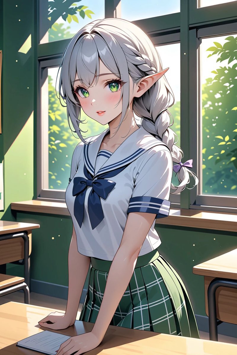 キャストはエルフのガリーナ・ウストヴォーリスカヤ嬢。 【制服イベント】#AIgotoschool #私達は全てのお題に対して画力による介入を開始します pic.x.com/8CNfOU1kdb x.com/felicia_aqua/s…