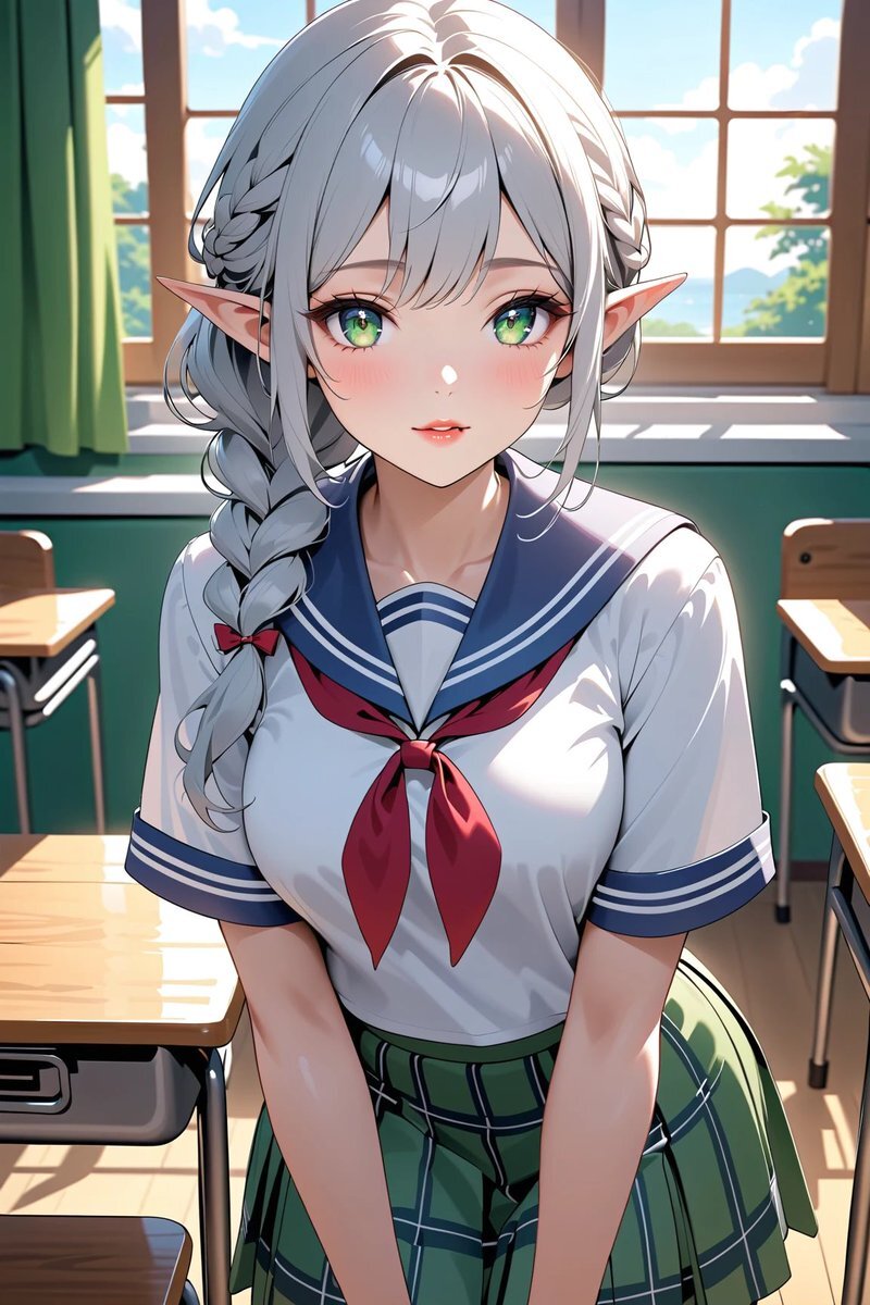 キャストはエルフの沙羅・レーヴィナ嬢。 割合ブレザー制服を出してる気がするけど、 今回はセーラー服出したくなったw 【制服イベント】#AIgotoschool #私達は全てのお題に対して画力による介入を開始します pic.x.com/WBtL8XSE2B x.com/felicia_aqua/s…