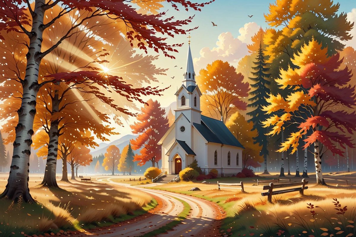 両方全く同じプロンプトです。 #mimiめる 発表会 お題:秋色 プロンプト:warmthとserene 作品名:教会のある景色 #私達は全てのお題に対して画力による介入を開始します pic.x.com/WjXS8Qsl5A