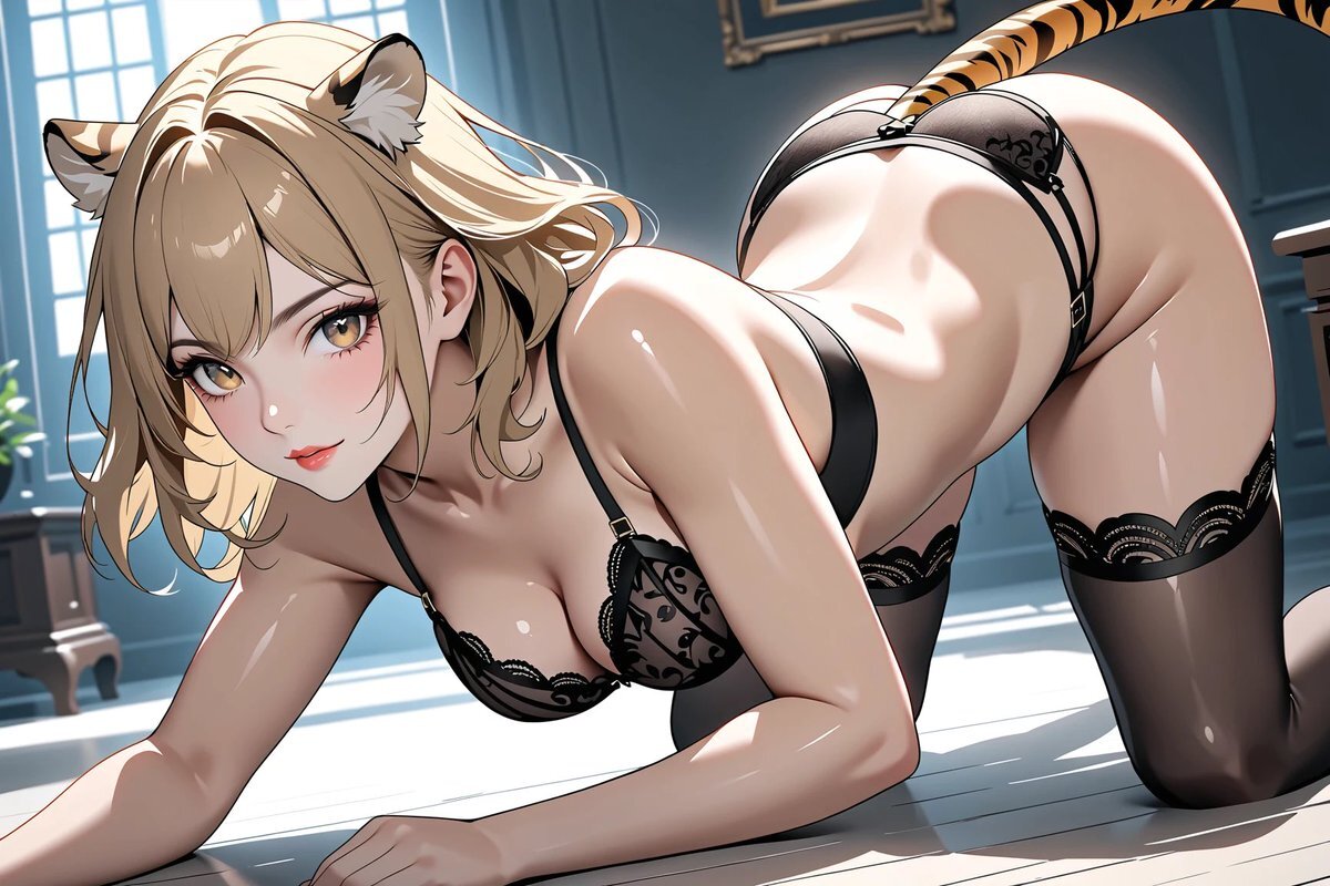 キャストはトラ獣人のエセル・スマイーズ嬢。 トラ獣人でも女豹ポーズ。 【水曜Lgショー】 #水曜Lgショー9d #私達は全てのお題に対して画力による介入を開始します pic.x.com/rvton3aPU8 x.com/felicia_aqua/s…