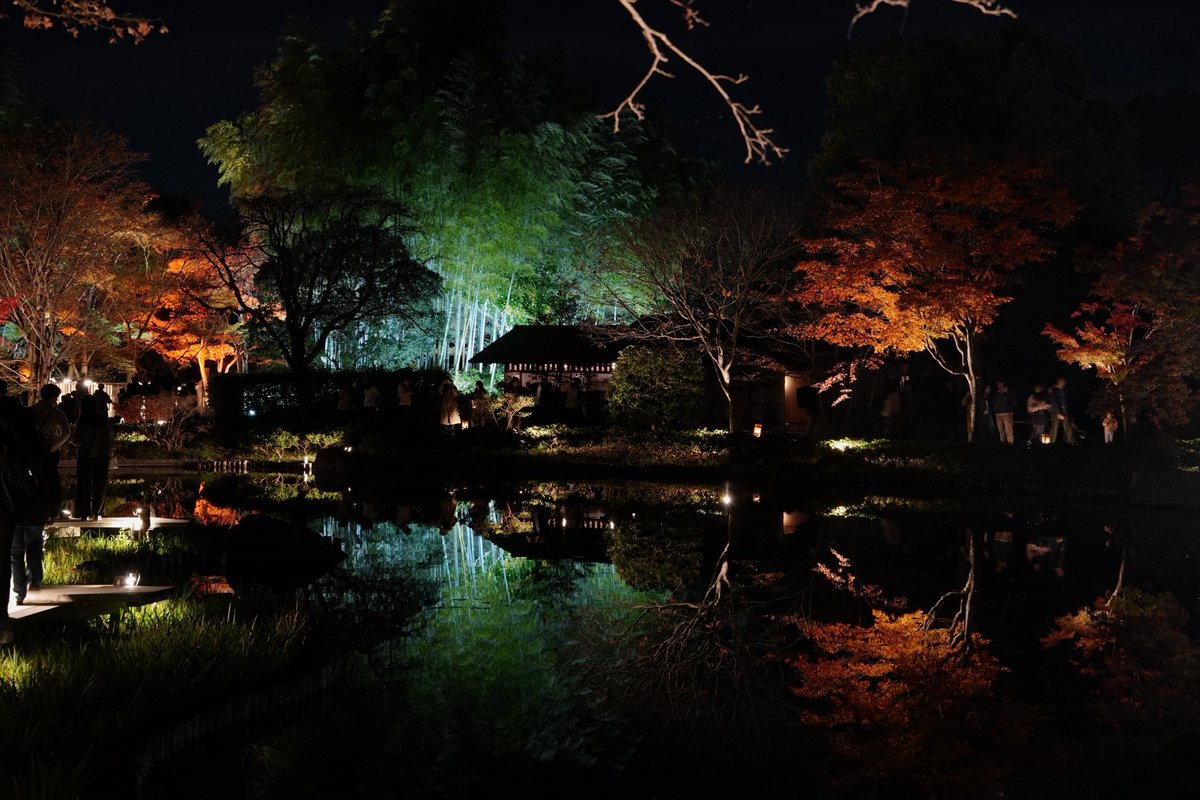 昨日の昭和記念公園の紅葉ライトアップイベント。見頃前だからかとても空いていてよかった。見頃になれば混雑して寒い。#昭和記念公園 #秋の夜散歩2025 #プロジェクションマッピング #紅葉 #秋 #ライトアップ #日本庭園 #風鈴 #キリトリセカイ #showakinenpark #AutumnVibes pic.x.com/FBiob9uVPv