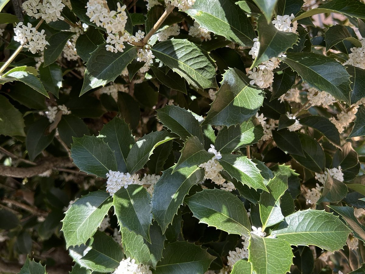 ヒイラギモクセイ。 ヒイラギとギンモクセイの交雑種らしい。 開花時期は、ギンモクセイ→キンモクセイ→ヒイラギモクセイ ヒイラギとギンモクセイは交配できるけど、キンモクセイとは難しいとのこと。 #秋の散歩 #ヒイラギモクセイ pic.x.com/CxAS6niiKv