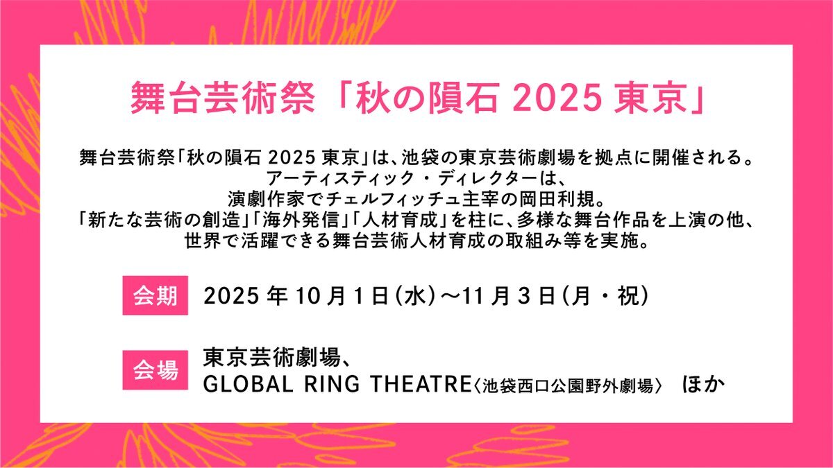 #秋の隕石2025東京 開催☄️ 岡田利規ディレクションのもと、AI×リップシンク《Signal to Noise》や音楽イベント《ユーバランス》など、注目プログラムが盛りだくさん✨ 🗓️10/1(水)〜11/3(月・祝) 📍池袋・東京芸術劇場 ほか 詳細・チケットは公式サイトへ! #東京アートイベントAW #東京 pic.x.com/0683VVlou7