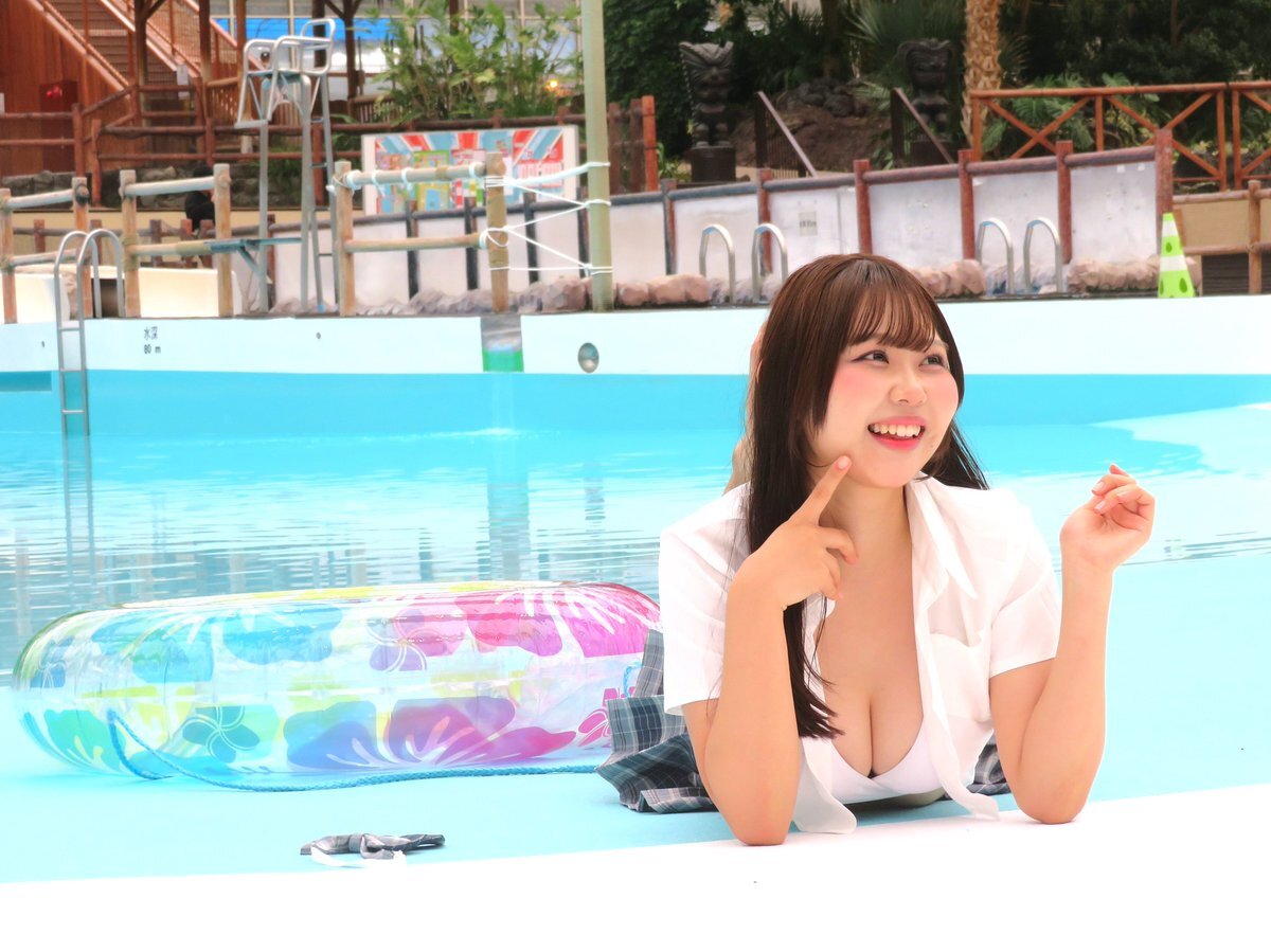 咲ちゃんはこの水着が一番のお気に入りみたいです🤍😊 #花森咲 #秋も水着さきちゃん #トコナツノサマラン #近代麻雀常夏祭 📷10月25日Aグループ3部 東京サマーランド pic.x.com/SdKYJZxpkc