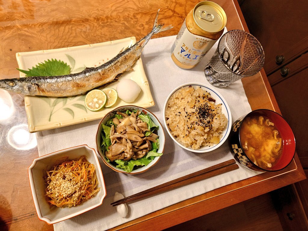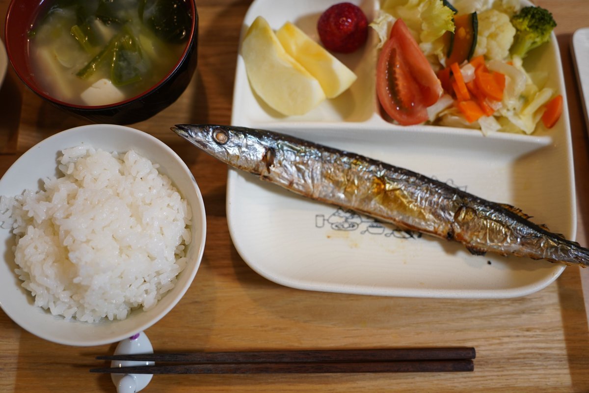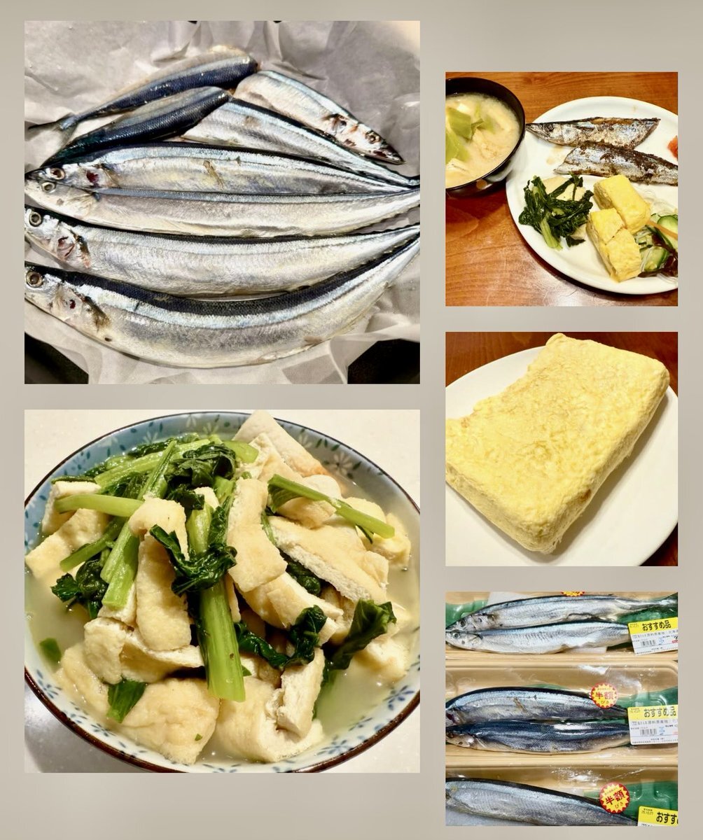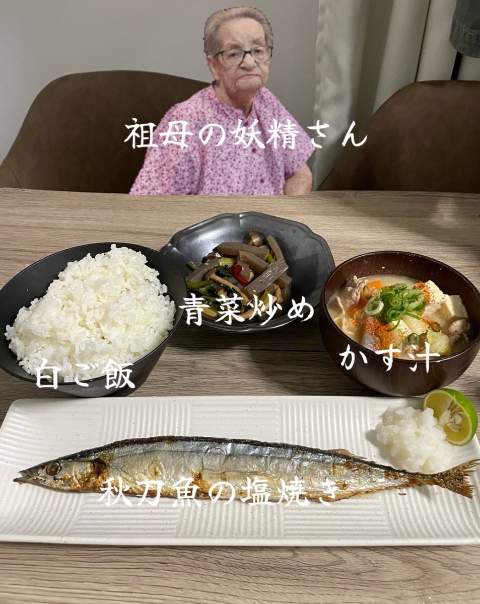 秋刀魚の塩焼き、かす汁で ご飯のおかわり我慢できる? #自炊 #ご飯のおかわり我慢ザウルス #秋刀魚の塩焼き #かす汁 #青菜炒め #祖母の妖精さん pic.x.com/6nioOWXUcq x.com/grace_very_cut…