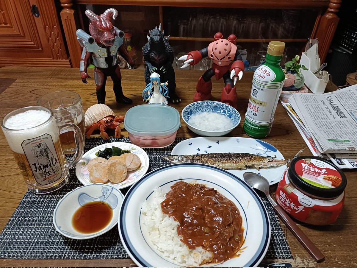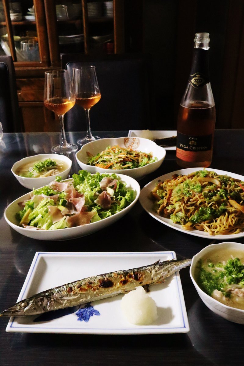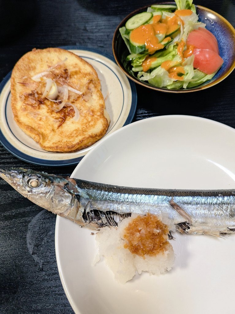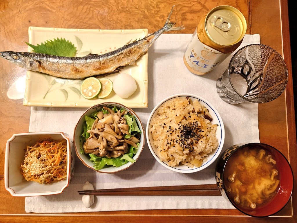 秋刀魚の塩焼き、かす汁で ご飯のおかわり我慢できる? #自炊 #ご飯のおかわり我慢ザウルス #秋刀魚の塩焼き #かす汁 #青菜炒め #祖母の妖精さん pic.x.com/6nioOWXUcq x.com/grace_very_cut…