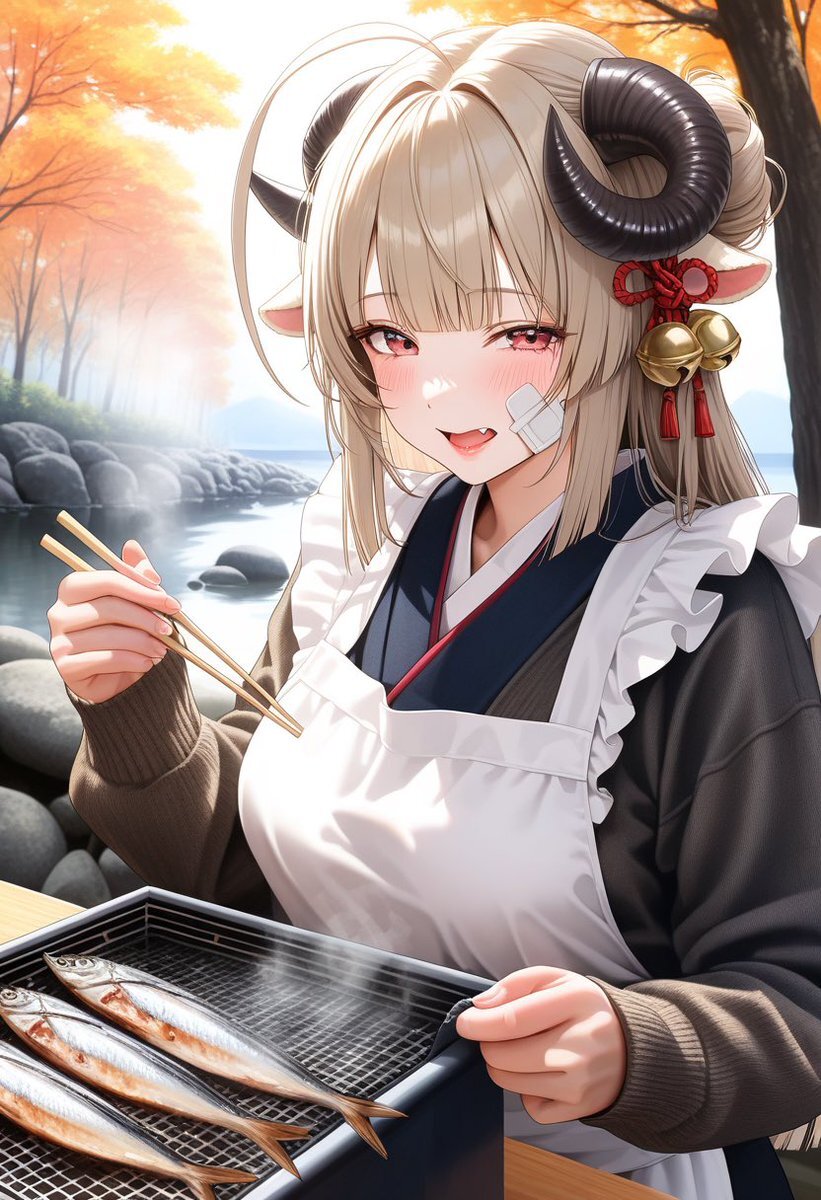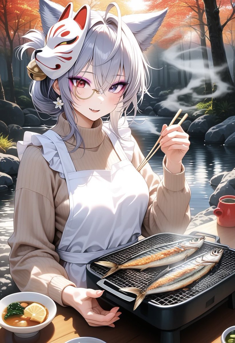 今日の飯係、ムムちゃん╭(°A°`)╮ 今回は秋刀魚の塩焼きー。 シラヌイさん応援で焼いてます。( *・ω・)ノ なんか今回は平和やなw まぁ昨日はムムちゃんのおにぎりネタ擦ったからかw╭(°A°`)╮ #AIイラスト #秋刀魚の塩焼き pic.x.com/gSHYN9oVgM
