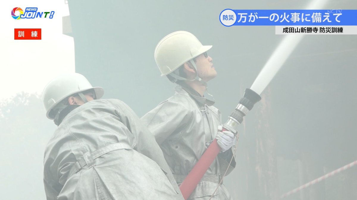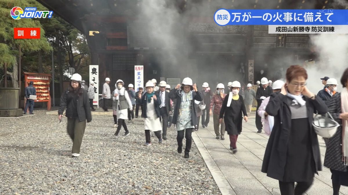 「新勝寺で防災訓練」 #秋季全国火災予防運動 にあわせて、11日、成田山新勝寺で防災訓練が行われました。光明堂内でろうそくが倒れて出火した想定で、避難誘導や初期消火、重要物の搬出などが行われました。また、自衛消防隊と成田市消防団による放水訓練も行われました。【#NEWS_JOINT 11月14日号】 pic.x.com/FQAK3XR7wa