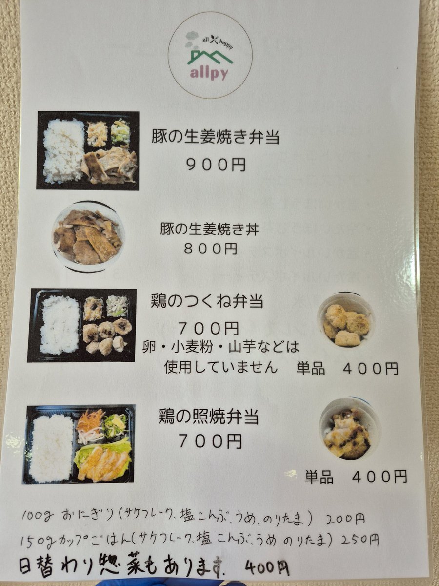 こんにちは☺allpyです! 11/17 allpy本店オープンしました! 風も強いし雨も降ってるけど、お店開けてますので、お気軽にお立ち寄りください☺ キッチンカーのときはこんな天気の日は出店したくなかったなぁ…😅 #お弁当お惣菜 #秋田市土崎港中央3丁目6-25 #allpy #アレルギー対応 pic.x.com/LiKKXUfSdA