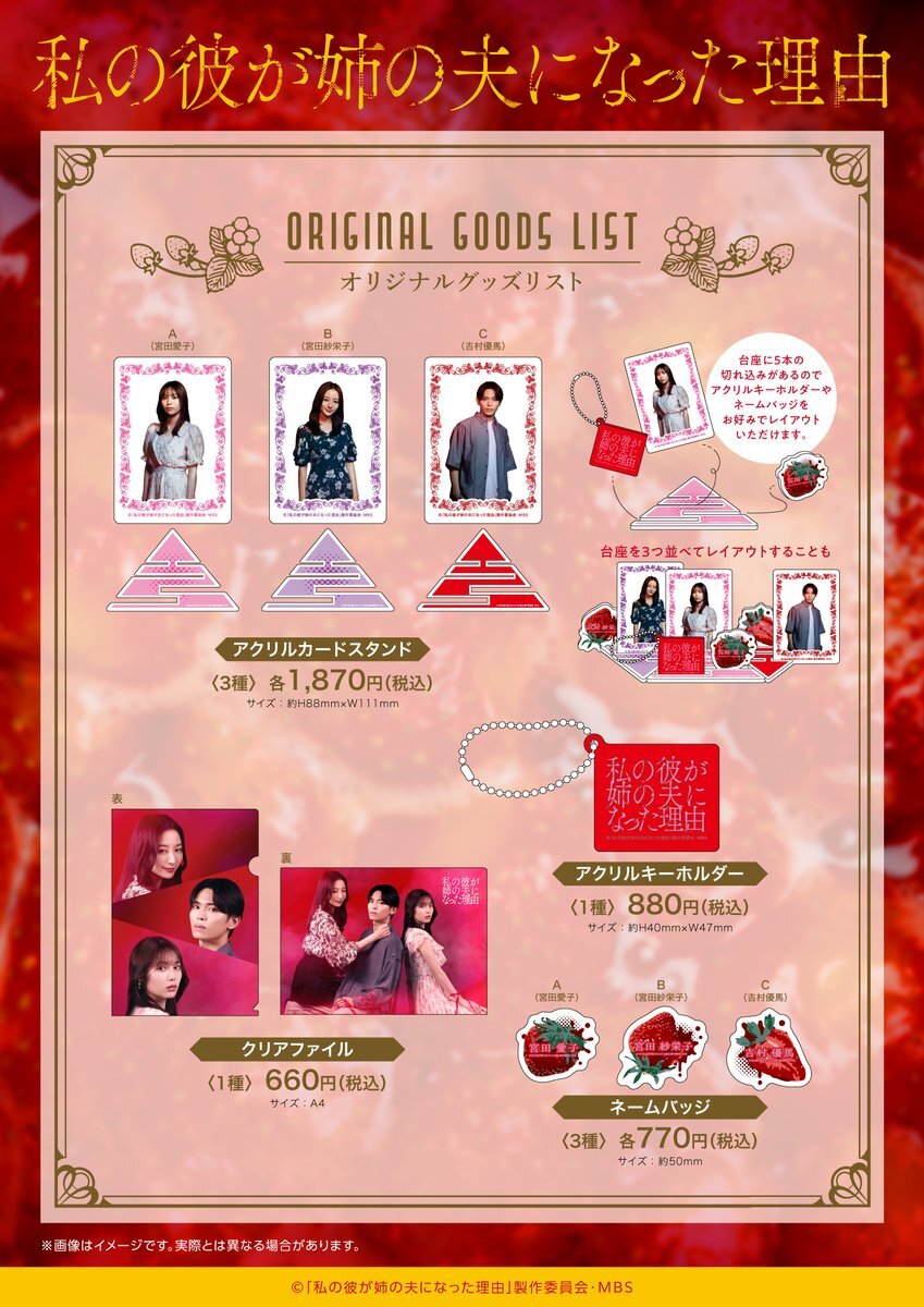 \🛒グッズ通販START📢/ #私の彼が姉の夫になった理由 ドラマグッズは #カレアネカフェ での店頭販売の他、WEB通販も可能です‼ 📍販売期限📍〜10/30(木)23時59分まで📌 shop.imthree.net/view/category/… 通販のお届けは11月末頃を予定しております📦 #秋田汐梨 #影山拓也(#IMP.) #高田里穂 #美桜せりな pic.x.com/S34VQlkQTT