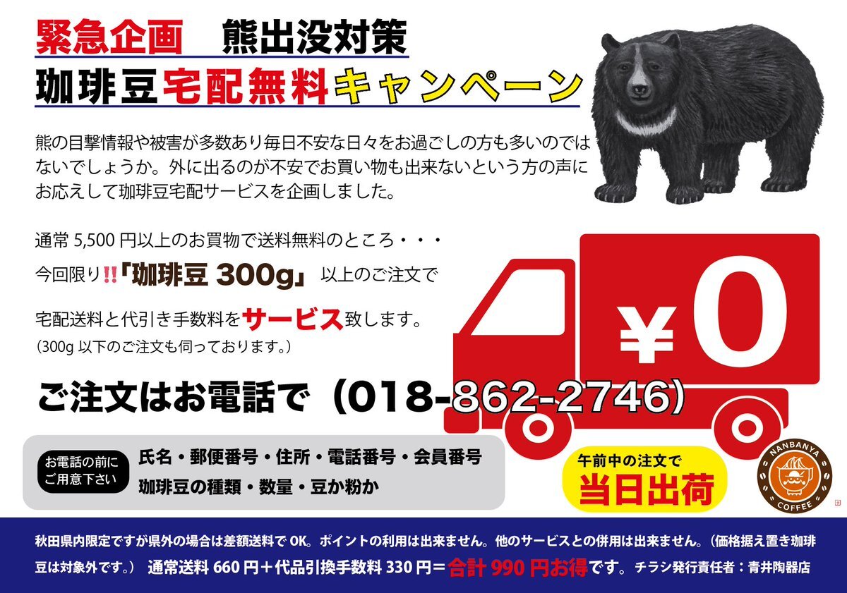熊出没に伴う被害が魁新聞に掲載されておりました。その中で、当店の活動も紹介されております。 # #熊出没 #熊騒動 #熊の影響 #魁新聞 #さきがけ新聞 #さきがけ #秋田市通町 #南蛮屋 #炭火焼きコーヒー #宅配サービス #南蛮屋あおい #秋田駅から徒歩10分 pic.x.com/EwXYgmSBLP