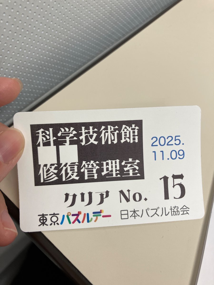 ヒント使用 背広のお兄さんありがとう 控えめに言って最高でした 東京パズルデー2025謎解き 『科学技術館■■修復管理室』 Dモードをクリアした #謎解き #科学技術館 #東京パズルデー2025
