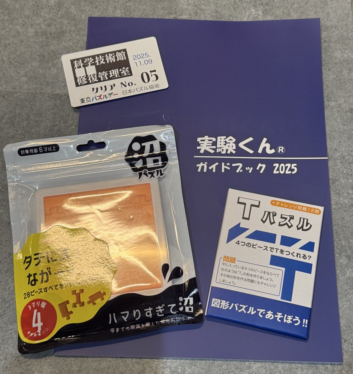 謎解きが一段落した後ブースを見て回り、ニコリの編集の方々とお話もできました! (バッチも着けていきました) ニコリのペンシルパズルは、見た目も解き味も本当に美しい✨ お風呂上がりの楽しみで、毎晩解いています #科学技術館 #東京パズルデー2025 #ニコリ pic.x.com/kUquvYHqny