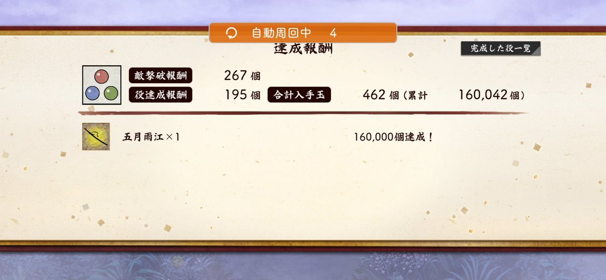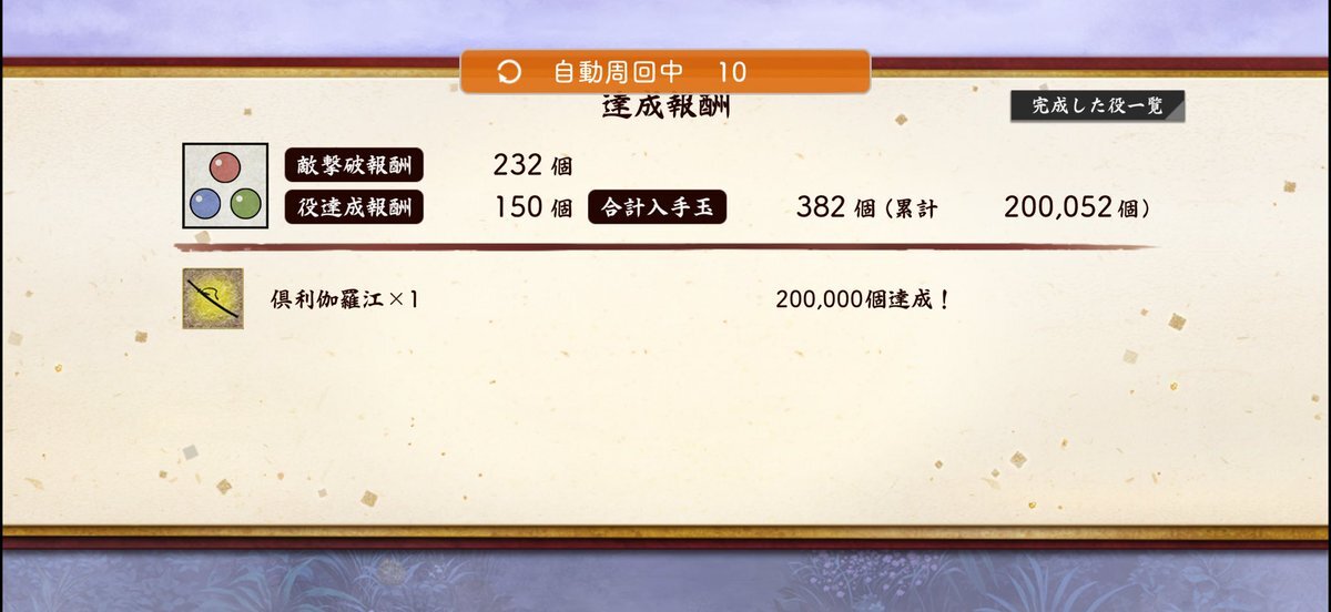 今回はここ迄〜 ど〜しても 10万は行かない⋯まぁ今回経験値で江育てるのに集中しちゃったから 次は稼ぐのに集中すっか⋯(毎回この思考www) #刀剣乱舞 #秘宝の里 pic.x.com/eP1oxeC1dZ