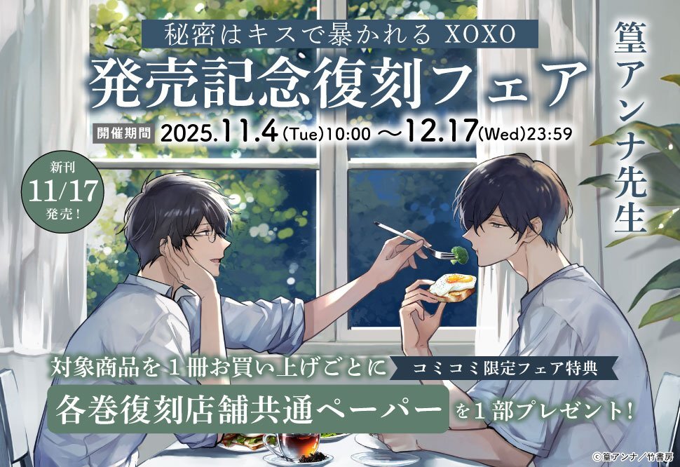⋆⸜💋開催中💋⸝⋆ #篁アンナ 先生(@infordia) 📕💕 📚『#秘密はキスで暴かれる XOXO』発売記念復刻フェア📚 新刊の発売を記念して、対象商品をご購入ごとに 各巻それぞれに応じた✨復刻店舗共通ペーパー✨を進呈🎁 📅12/17(水) 23:59 終了 comicomi-studio.com/fair/c_NWU57ry… pic.x.com/TbqdBYfnVj