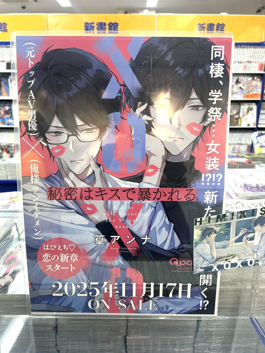 【書籍入荷情報】 #篁アンナ(@infordia)先生 「#秘密はキスで暴かれる XOXO」 が入荷したどすえ~‼️ アニメイト特典で《リバーシブルカード》付き🎁 ぜひお買い求め下さい✨✨✨ #アニ推しBL pic.x.com/jfIbGHCuDo