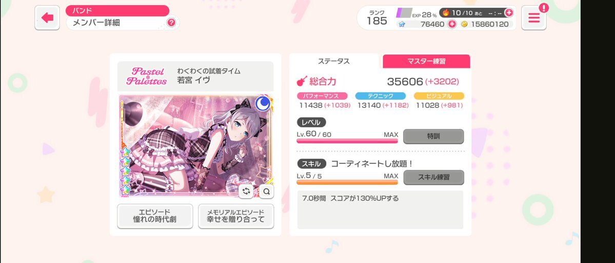 ★5 #若宮イヴ の3Dライブ衣装はこちら👗✨ 「裁縫セット」と「コイン」を使って衣装解放することで、他のキャラクターに着せることも可能です🎶 #バンドリ #ガルパ