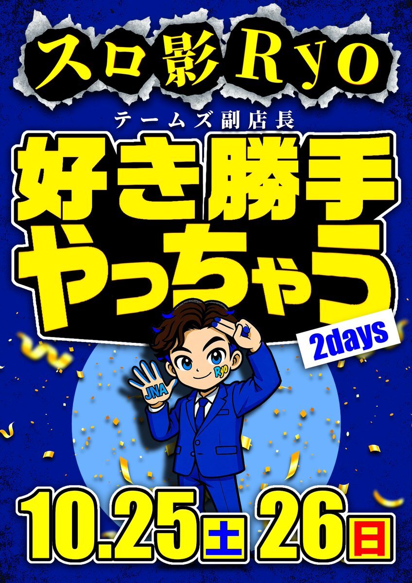 ◤◢◤◢◤◢◤ ◢◤ ◢◤◢◤ ◢ ⭐️ 僕が主役!🔟月2️⃣5️⃣日(土) ◤◢◤◢◤◢◤ ◢◤ ◢◤◢◤ ◢ 🟦スロ影Ryoの好き勝手やっちゃう🟦 DAY1 ついにKITA🔥 🪙💐スロッター達の考察心理戦💐🪙 ▪️店内の?販促も✅ ※本日の時差抽選後 19時頃展開予定! ▪️九州男児店長から"伝承"の焼きそば x.com/tanatana_jna/s…