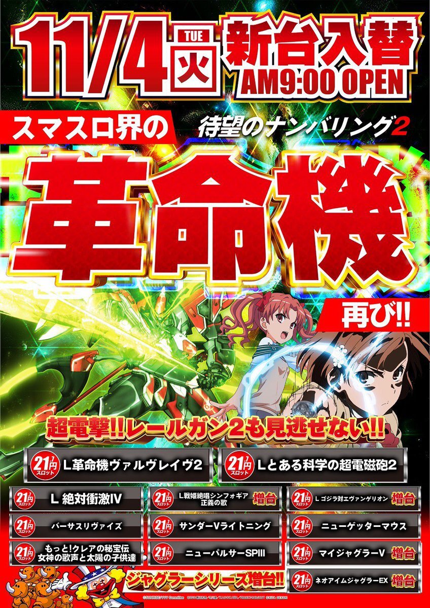 ヴァルヴレイヴ2の切断前に連続50ドラしてた台が空いたので移動してます🚶 店内はレールガン2の4台島が2台好調👏 まいったぁ機種も空き台出てるしダケジャナイ探しもまだまだこれから #テームズ #秦野市を盛り上げ隊 【PR】 pic.x.com/qgthRl7Eop x.com/v_datsusara/st…