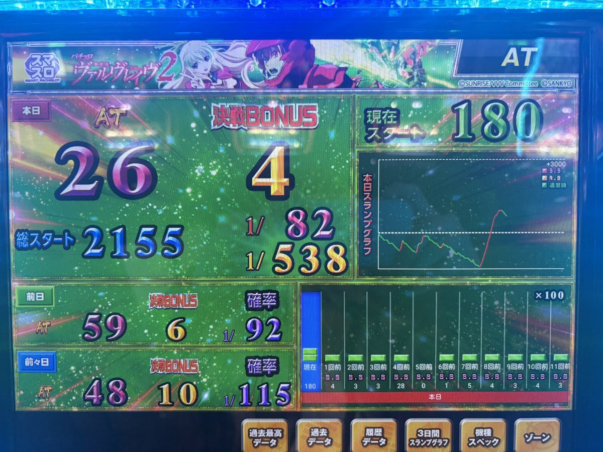 前半戦終了!! 投資8本で現在2,400枚ほど! 今日はヒキがいいけどイマイチ伸ばせてないので後半もっと頑張りたいところ!! 店内状況📣 初代ヴァルヴレイヴ半分オーラ👏 13,644枚 7,033枚 6,237枚 6,000枚over 上位中 3,337枚 ヴァルヴレイヴ2 半分くらい良さそう⭕️ 5,834枚 5,828枚 3,818枚 x.com/v_datsusara/st…