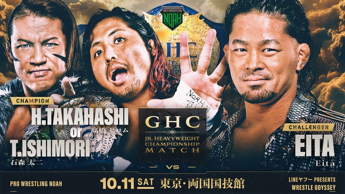 / 👑10.11両国【GHCJr.ヘビー級選手権】変更対戦カード決定‼️‼️ \ LINEヤフー PRESENTS WRESTLE ODYSSEY 📅10月11日(土)15:00開始/13:30開場 🏢東京・両国国技館 👑GHCJr.ヘビー級選手権試合 (王者)9.28神戸 高橋ヒロムvs石森太二の勝者 VS (挑戦者)Eita #noah_ghc #njpw