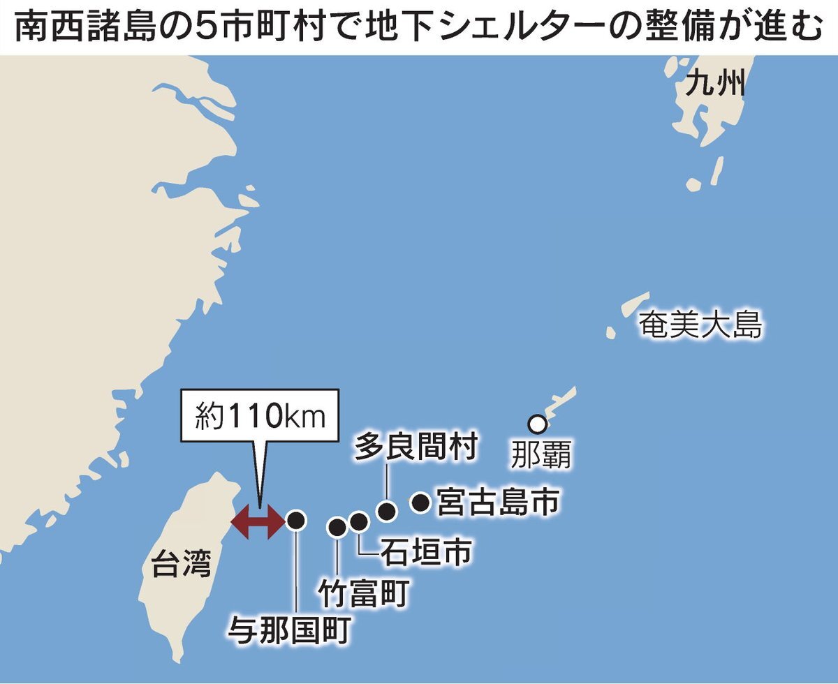 南西諸島に地下シェルター 2週間滞在可能に、台湾有事に備え nikkei.com/article/DGXZQO… 地下駐車場や町役場の地下を活用してシェルターを整備します。原則は島外避難が基本ですが、住民が逃げ遅れた場合に活用することが想定されています。