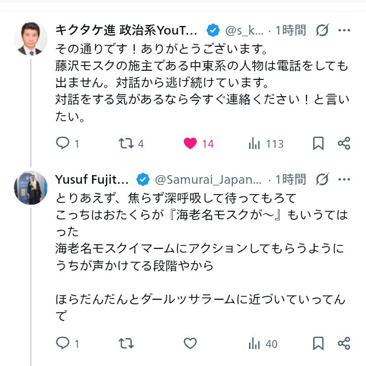滝本さんと藤田さんのやりとり始まった! #モスク反対 #ムスリム反対 #モスク建設反対 #移民反対 x.com/takitaro2/stat…