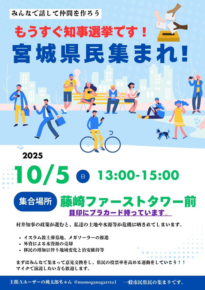 私の肌感では村井知事が騒がれている理由を知らない、騒がれている事すら知らない人がほとんどです。 全体に言えますが… この危機的状況、情報をプロパガンダされた我々にどうやって伝えるかが鍵。 #宮城県 #宮城県知事選 #宮城県知事 #移民政策 #移民政策問題 #移民推進 #投票率 #選挙に行こう x.com/momoganagareta…