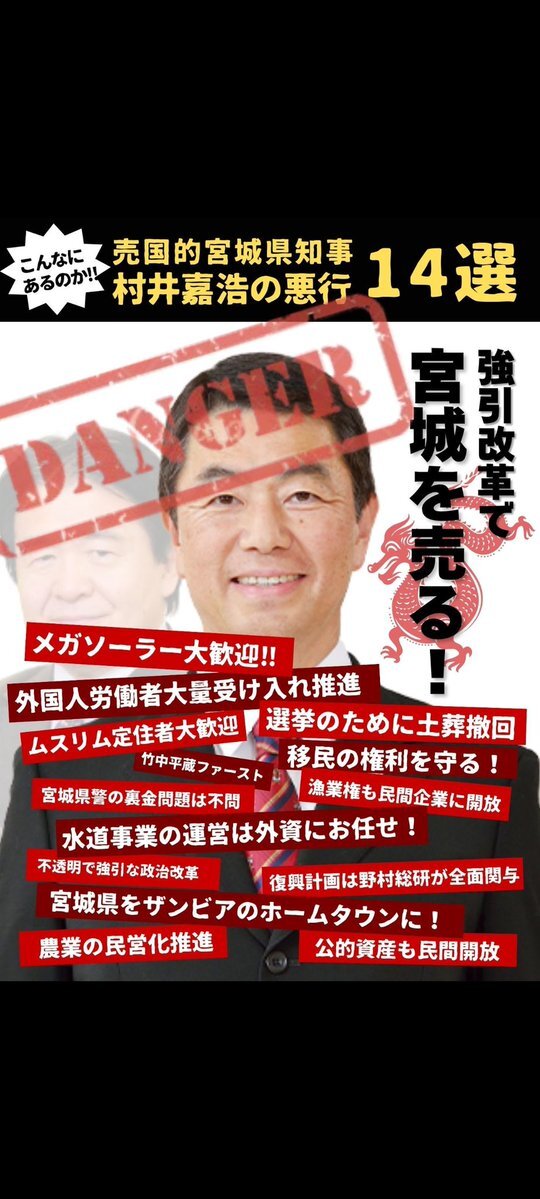 みんな【日本イスラム党】の現宮城県知事の村井に騙されてはいけないよ‼️‼️