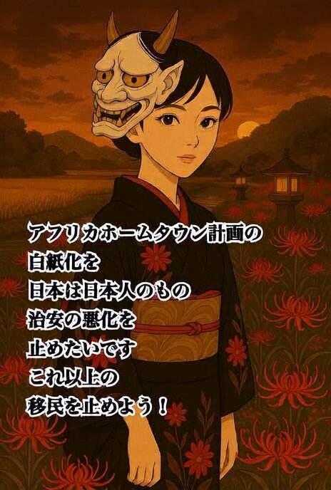 🟦移民反対派のXデモ!🟦 リレーお願いいたします🙇‍♀️ #移民ストップ日本を守れ #多文化共生の強制にNO #中国の赤い侵食を許さない #アフリカホームタウンの白紙化を #移民推進する政党を落選させよう #日本第一主義は当たり前 #日本第一主義を全日本国民の皆で叶えよう #日本第一主義政治の実現を x.com/sgr2pcxp0hhzrm…