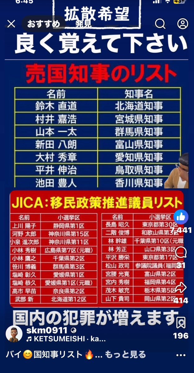#移民政策断固反対 #移民政策が日本を滅ぼす #移民ストップ日本を守れ #移民政策で日本が壊れる ⚠️⚠️ 「拡散希望 良く覚えて下さい 国内の犯罪が増えます 売国知事のリスト JICA:移民政策推進議員リスト」⚠️⚠️ pic.x.com/ZyI0qcuuwE