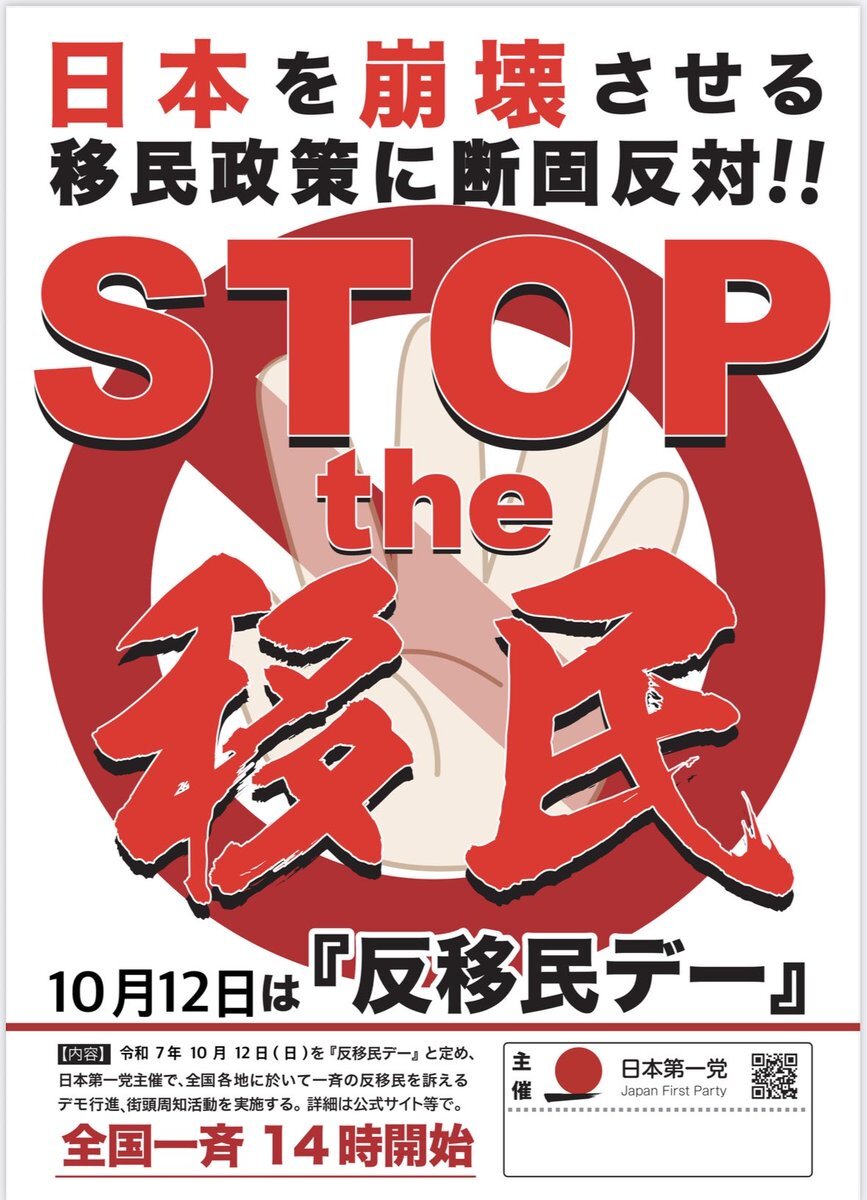 返信先:@o6yata勿論この日も参加します🇯🇵 今現在も水面下で移民政策が進行中😰 #拡散希望RP協力お願いします 10/26 日本全国各地で移民政策断固反対デモ決行‼️ #手遅れの欧州に学べ #今行動しないと間に合わない #移民政策で成功した国は無し #移民ストップ日本を守れ #移民政策大反対 #移民政策で日本は滅びる